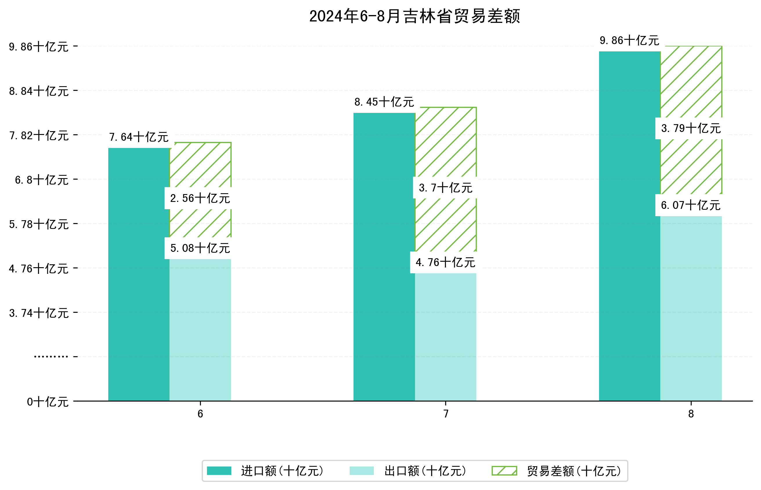 2024年8月吉林省进出口总额及进出口差额统计分析