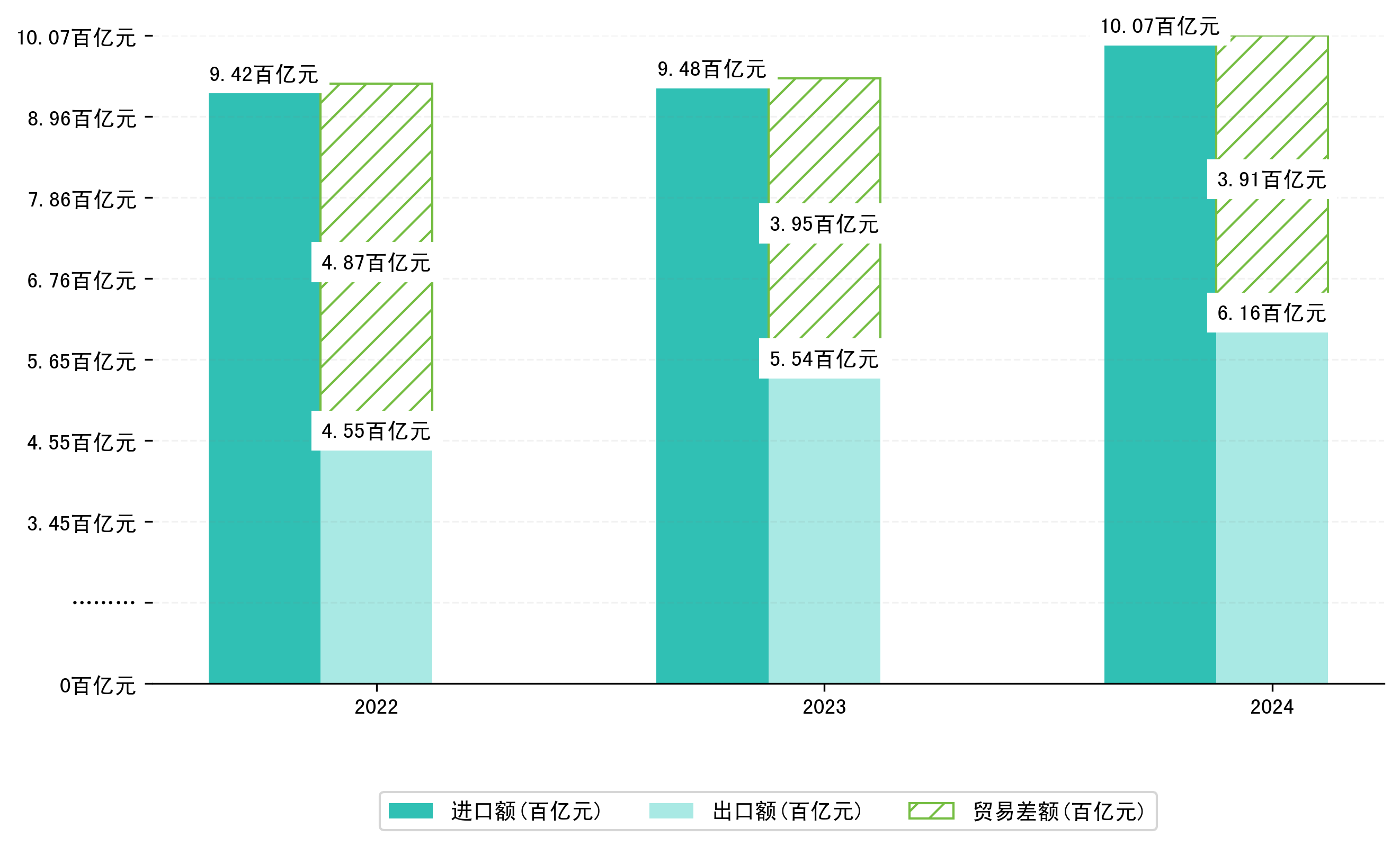 以人民币计,2024年1-11月吉林省贸易差额为390,7744,1793万元(贸易逆差),相比上年同期增加了4,1527,3540万元,同比增加-1.05%。