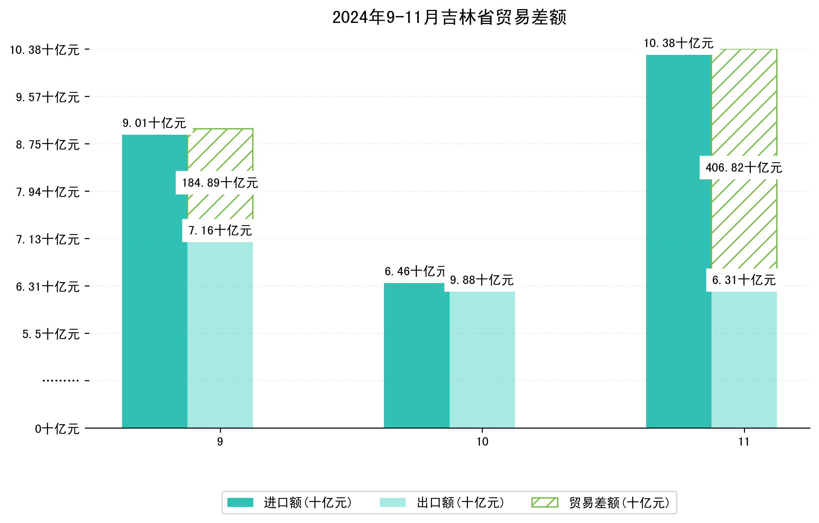 2024年11月吉林省进出口总额及进出口差额统计分析