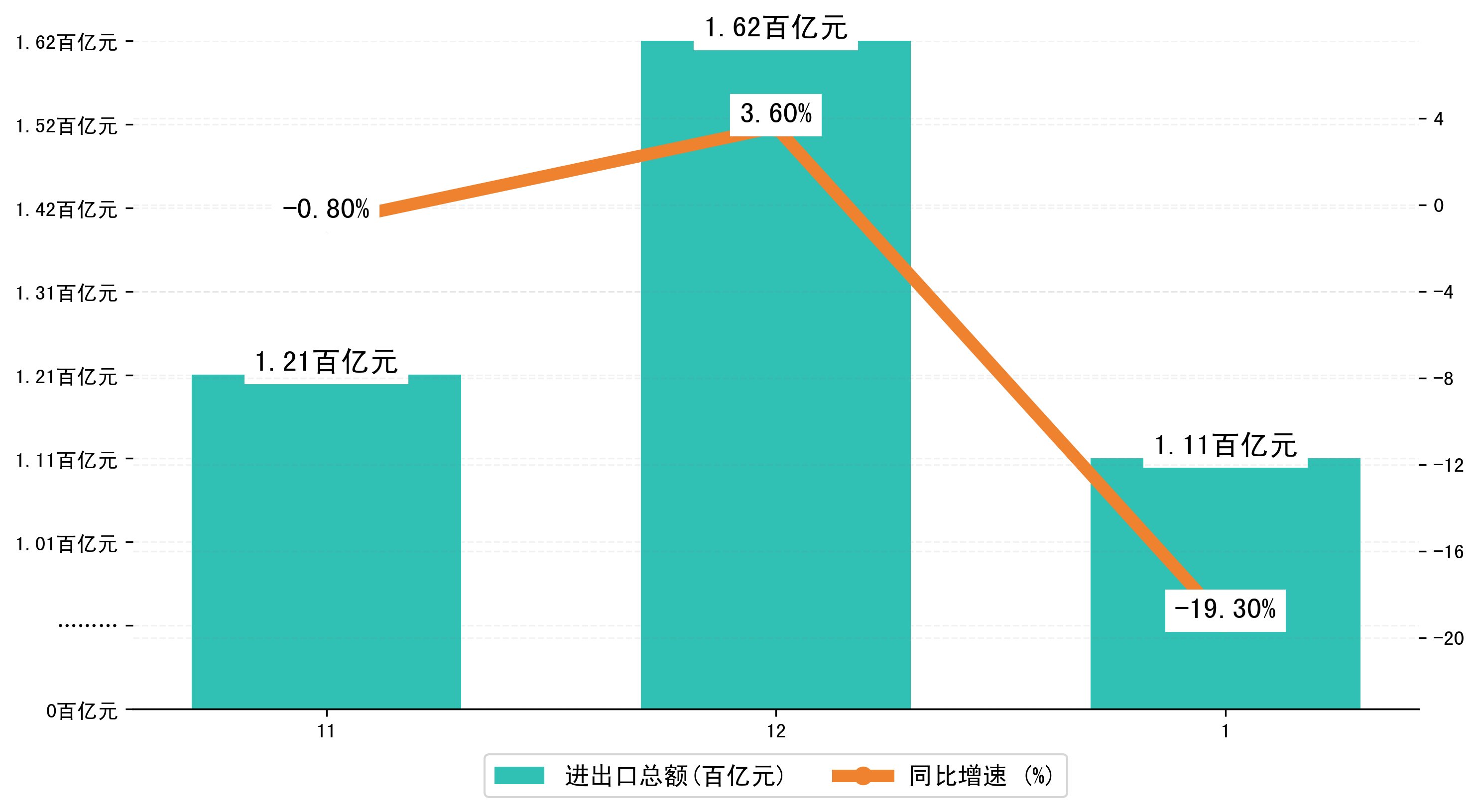 (图一:2023年11-1月吉林省进出口总额)