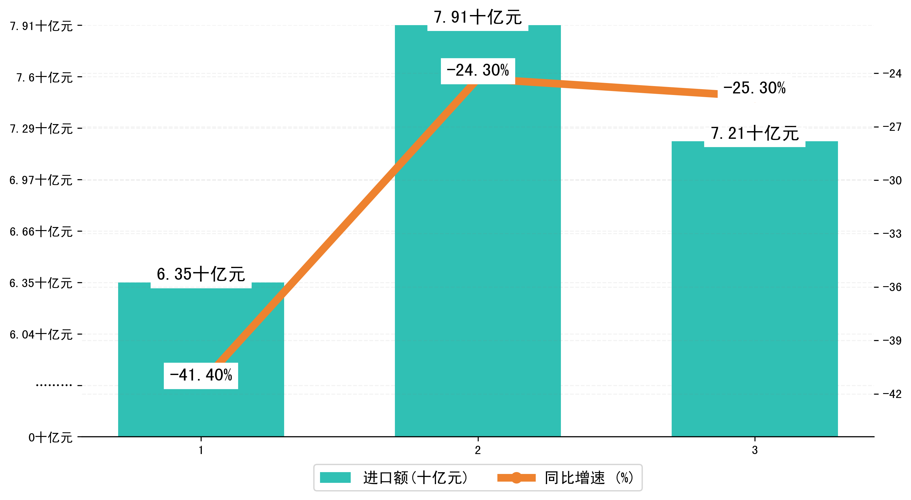 以人民币计,2025年1-3月吉林省进口额为214,6878.0296万元,相比上年同期减少了71,3240.2618万元,同比减少了-25.30%。