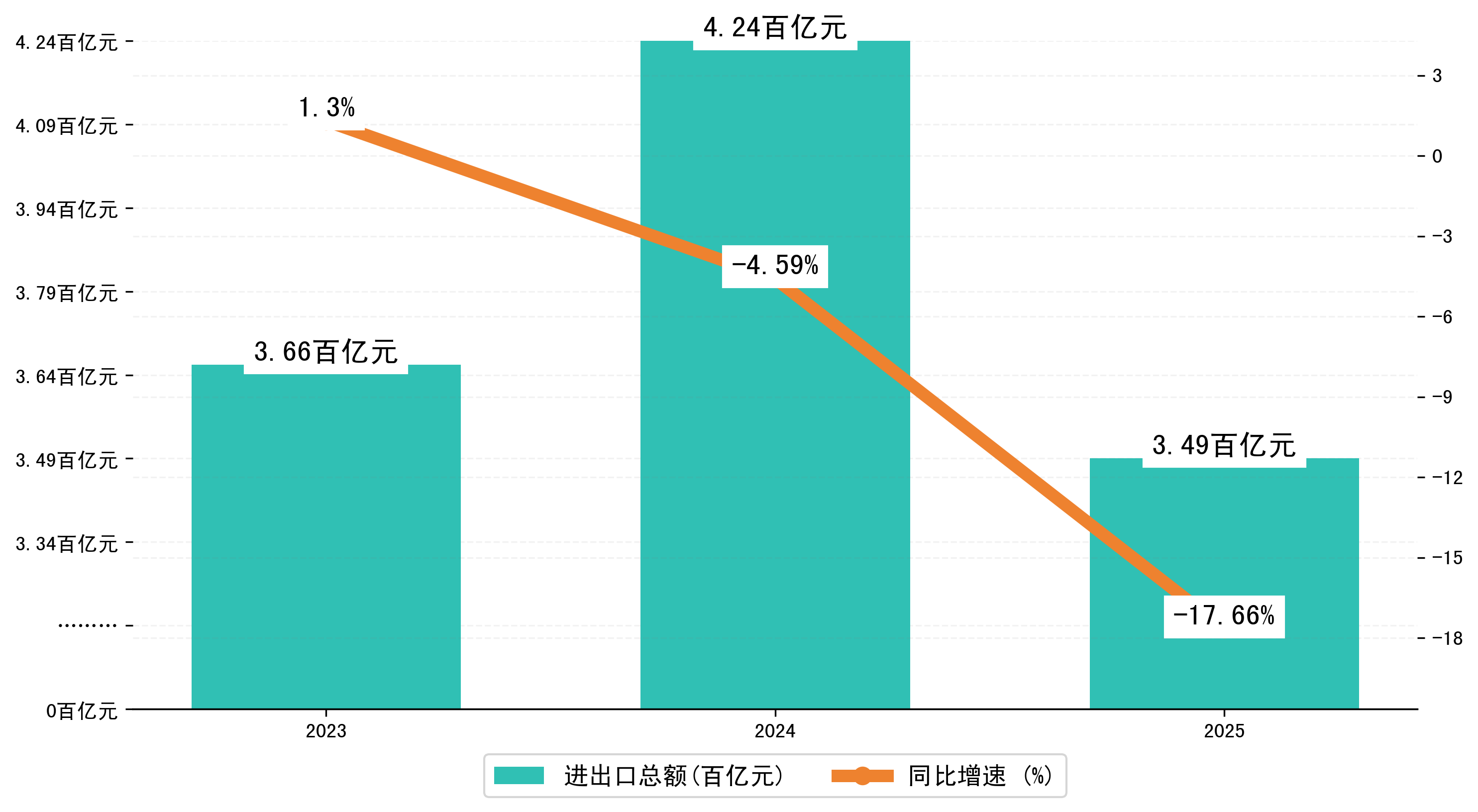 以人民币计,2025年1-3月吉林省进出口总额为349,1847.2309万元,相比上年同期减少了74,9011.1612万元,同比减少了-17.90%。