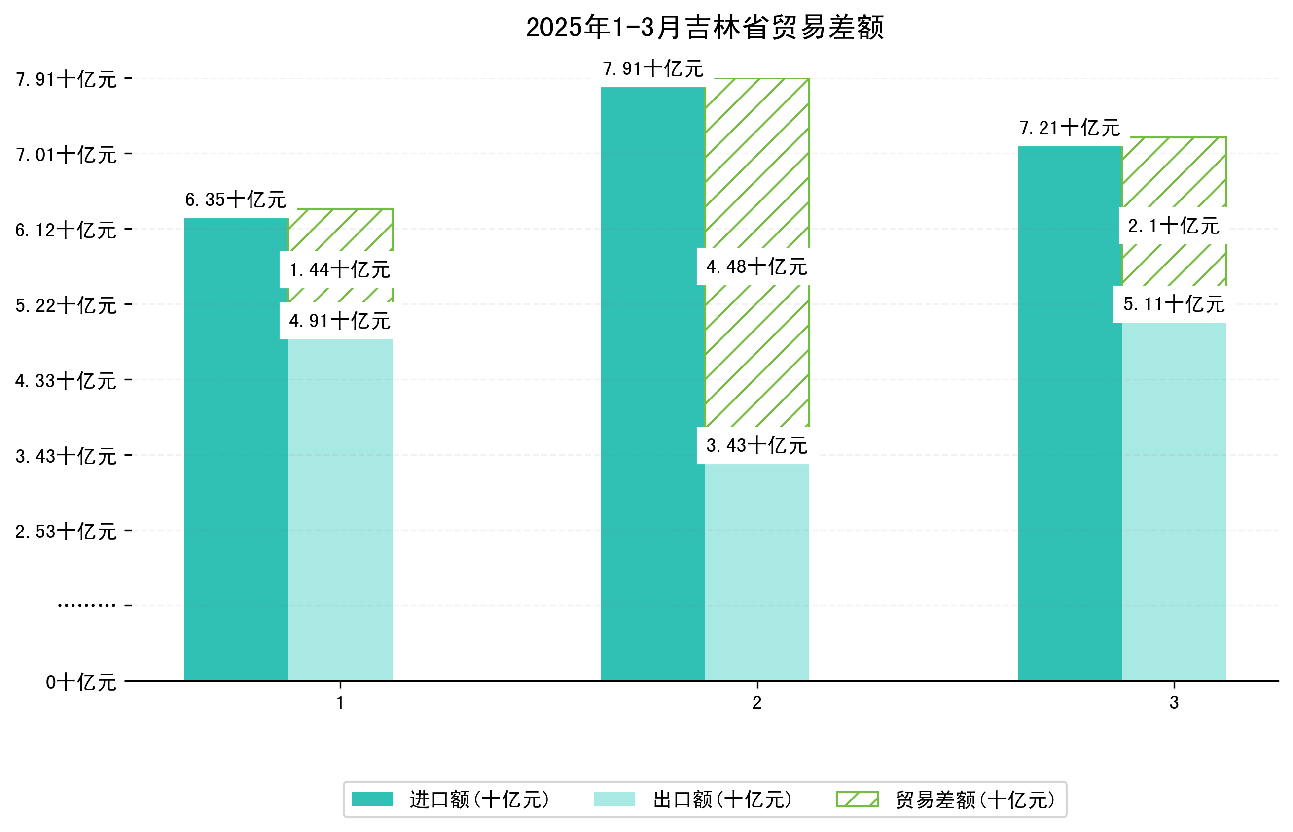 2025年3月吉林省进出口总额及进出口差额统计分析