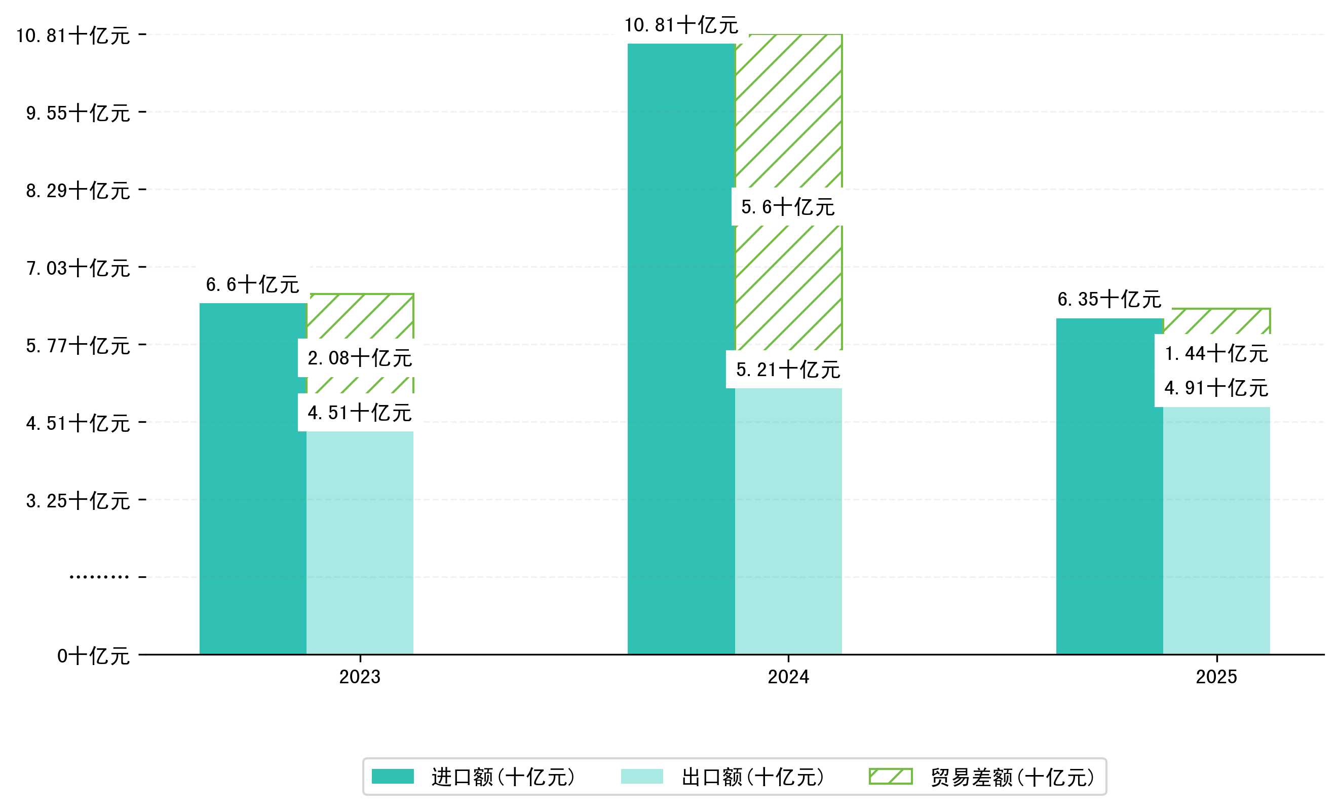 以美元计,2025年1-1月吉林省贸易差额为1,9974,0086万美元(贸易逆差),相比上年同期增加了5,9107,6305万美元,同比增加-74.74%。