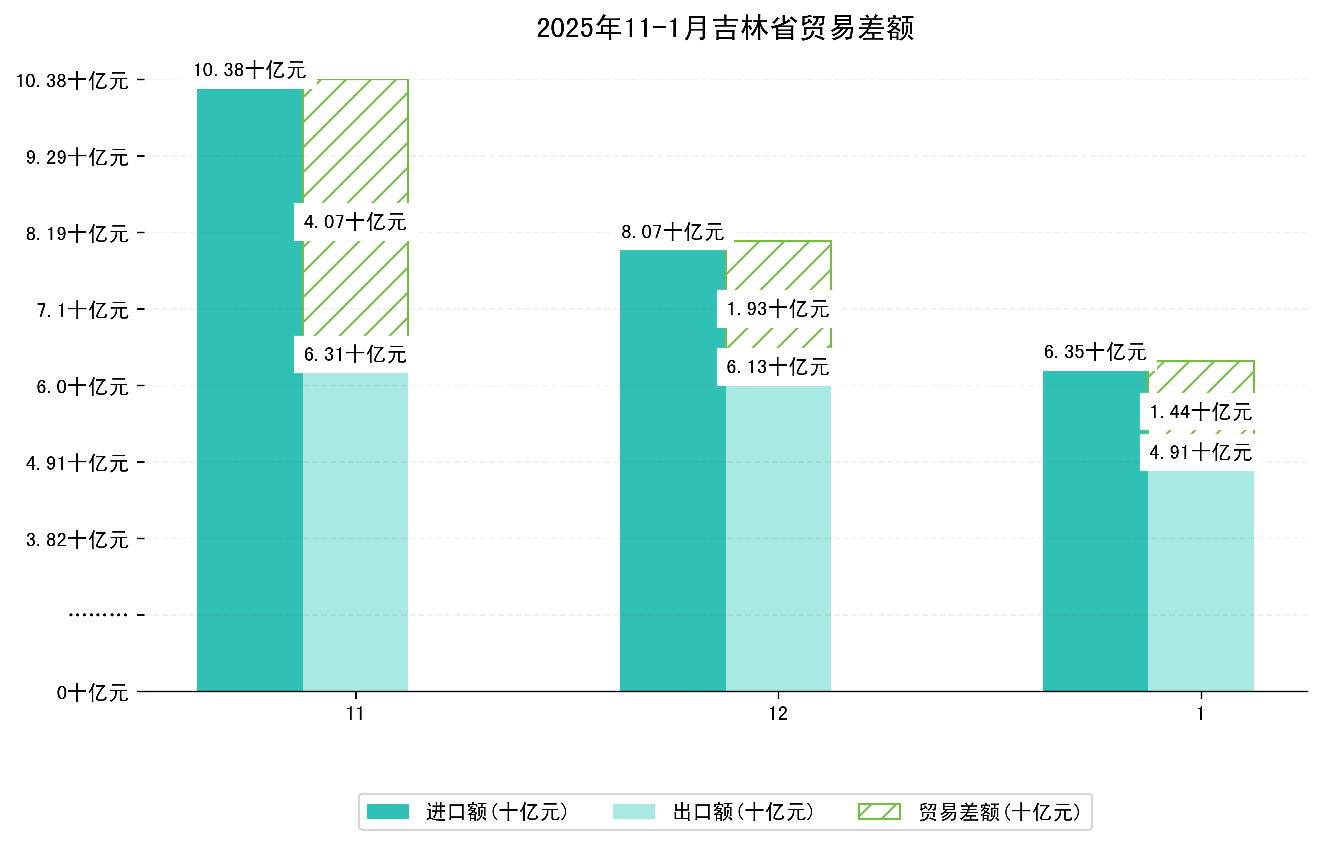 2025年1月吉林省进出口总额及进出口差额统计分析