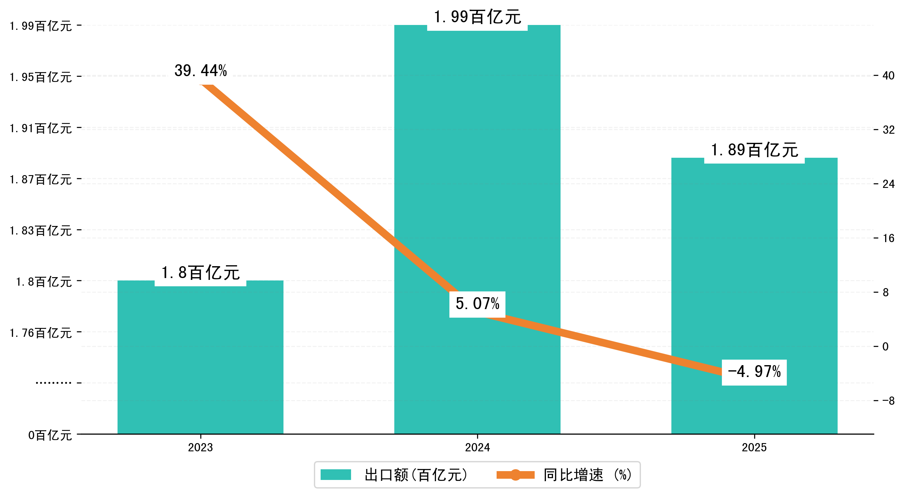 以人民币计,2025年1-4月吉林省出口额为188,7451.1407万元,相比上年同期减少了9,8755.9368万元,同比减少了-5.00%。