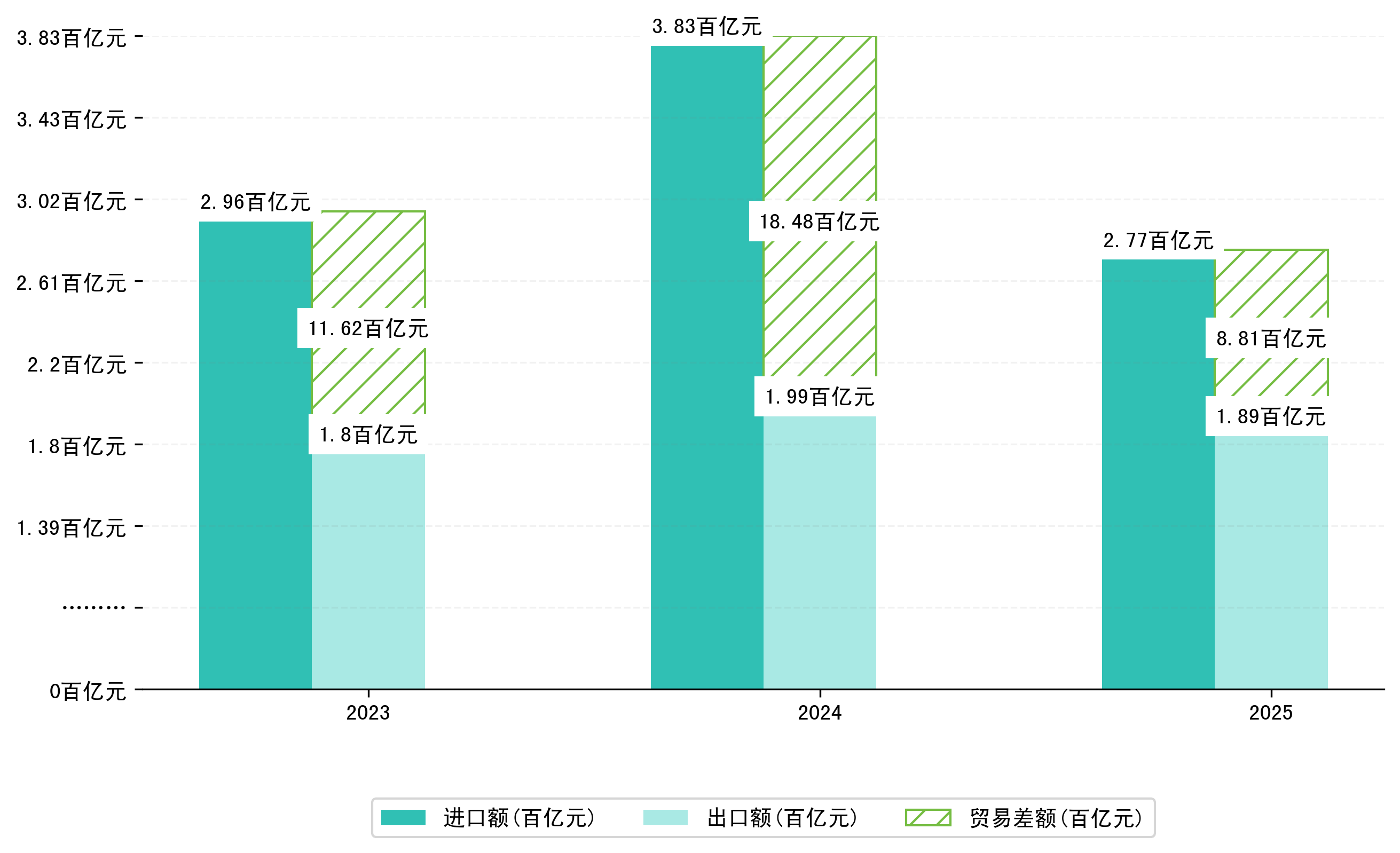 以人民币计,2025年1-4月吉林省贸易差额为88,0696,0225万元(贸易逆差),相比上年同期增加了96,6833,7501万元,同比增加-52.33%。