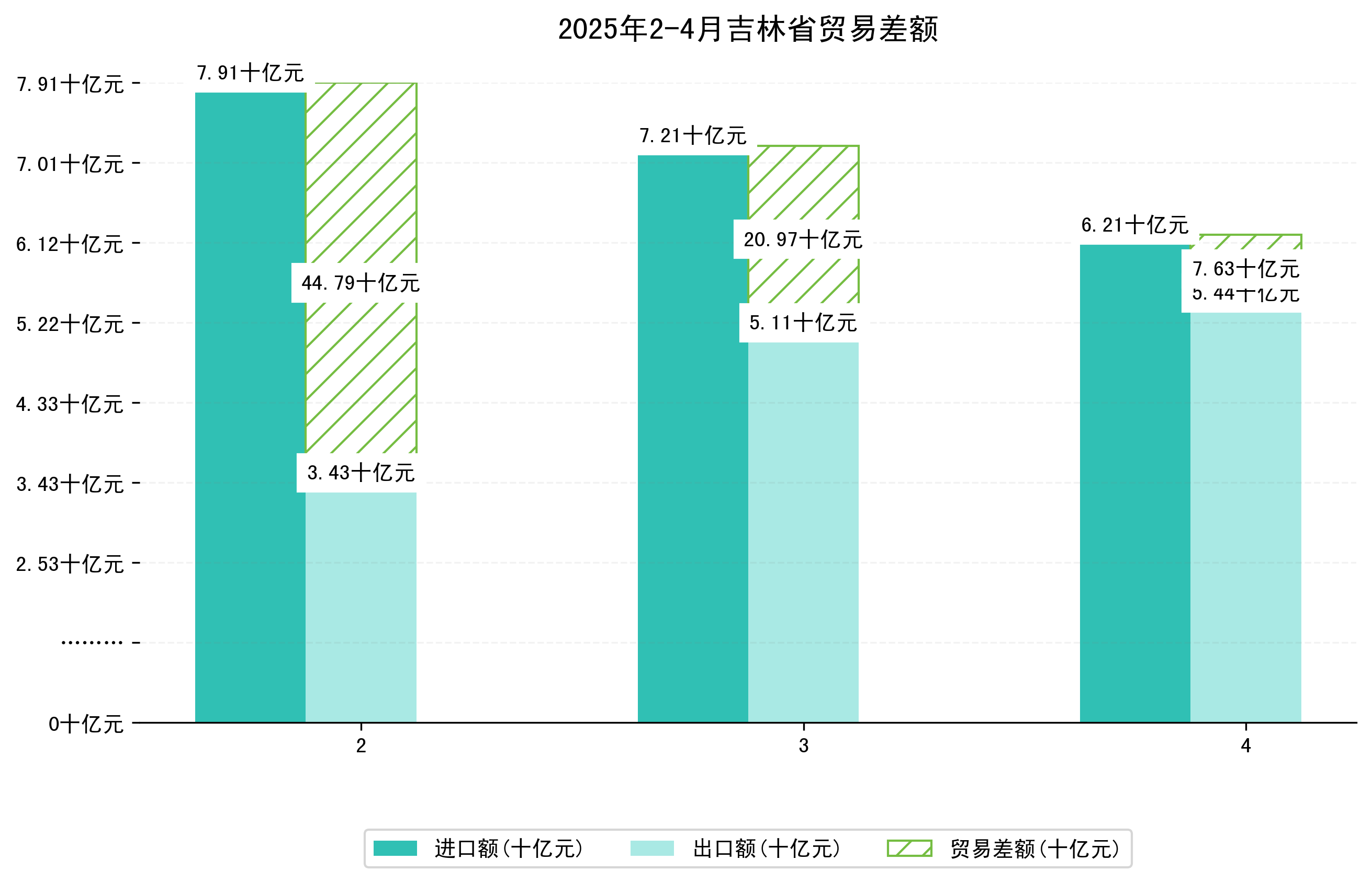 2025年4月吉林省进出口总额及进出口差额统计分析