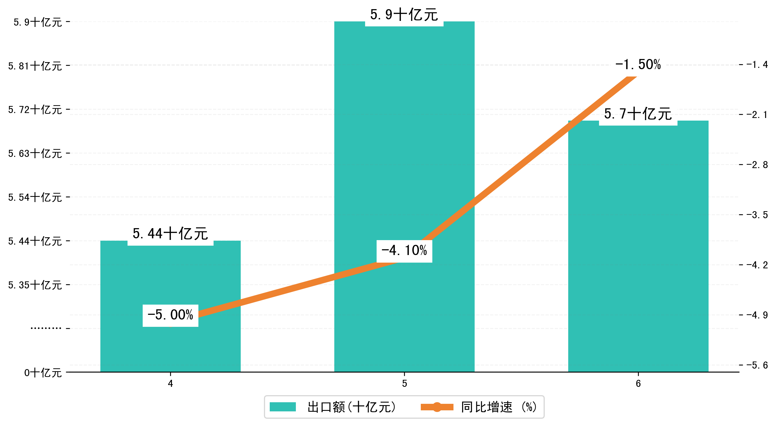一、2025年6月吉林省单月出口总额及进出口差额统计分析