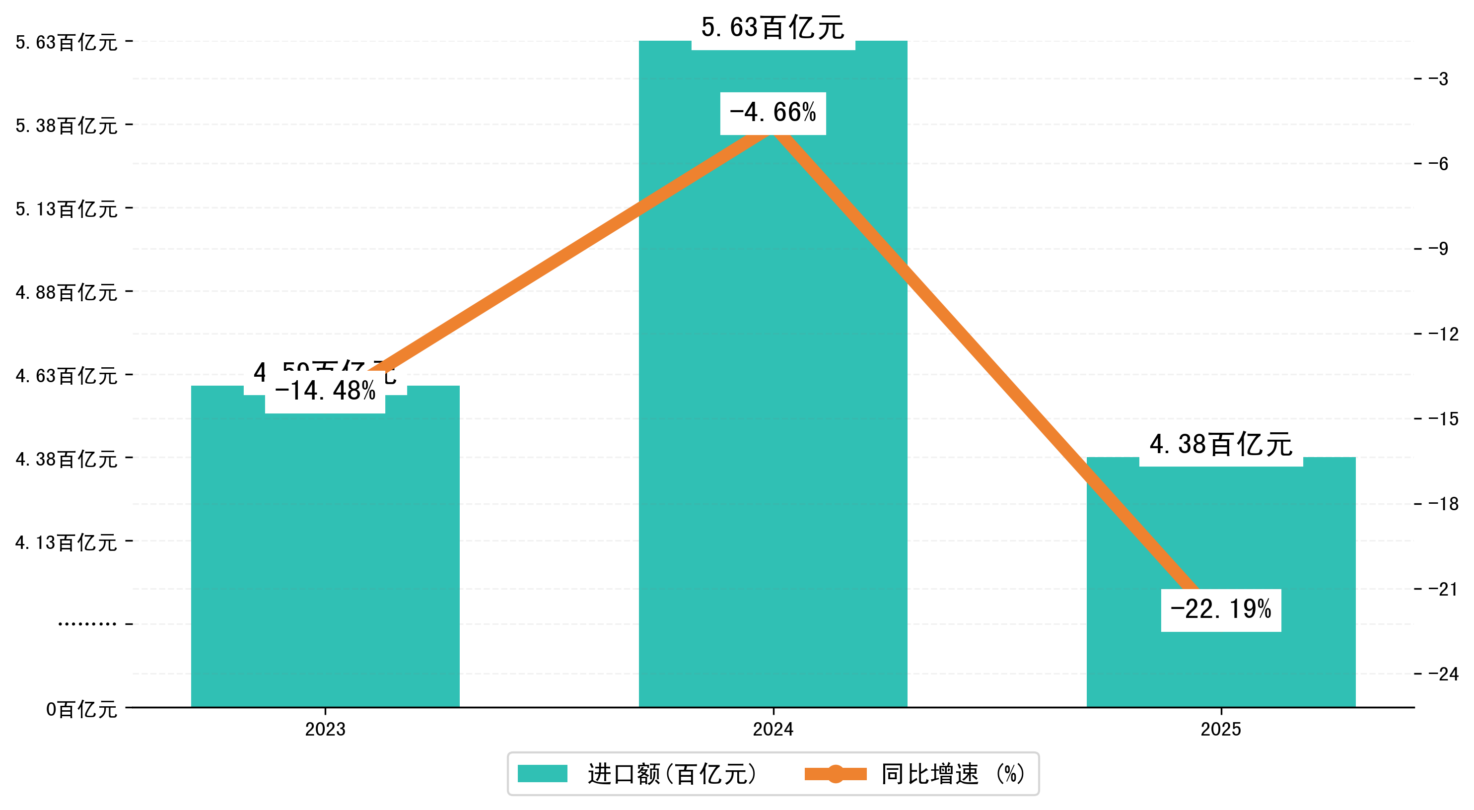 以人民币计,2025年1-6月吉林省进口额为437,8286.8414万元,相比上年同期减少了124,8842.5743万元,同比减少了-22.50%。