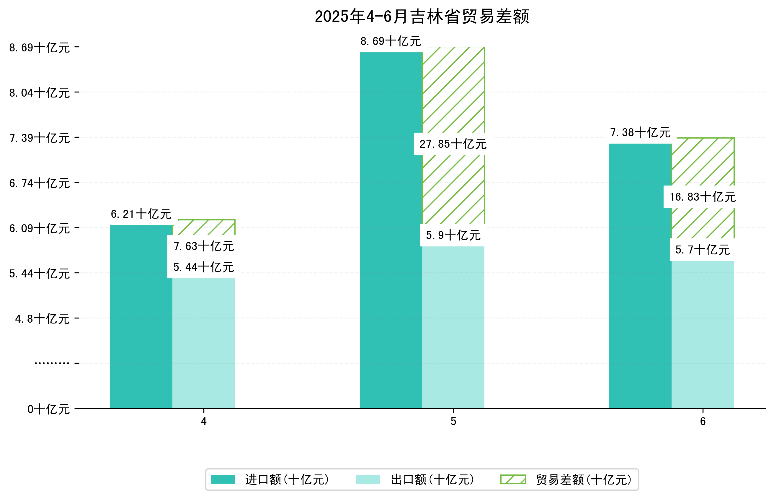 2025年6月吉林省进出口总额及进出口差额统计分析