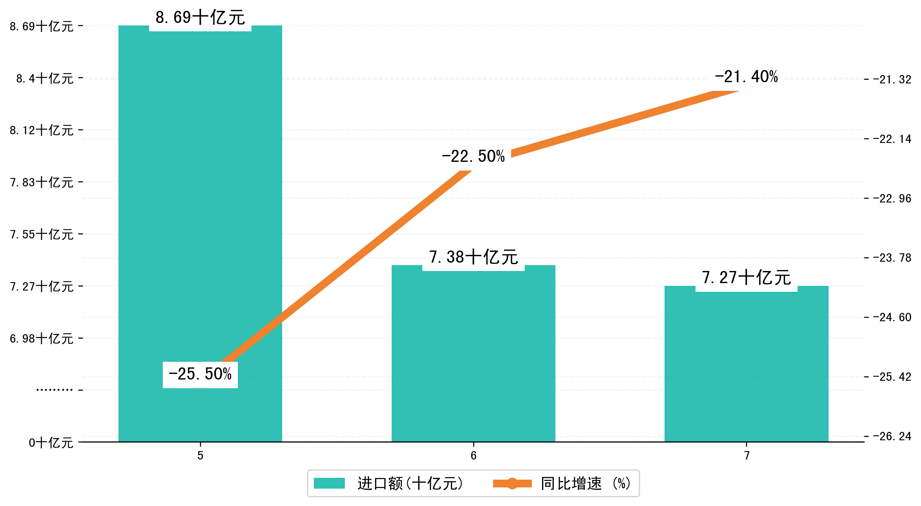 以人民币计,2025年7月吉林省进口额为72,6559.9998万元,相比上月减少了1,1218.4479万元;相比上年同期减少了11,8683.6949万元,同比减少了-21.40%。
