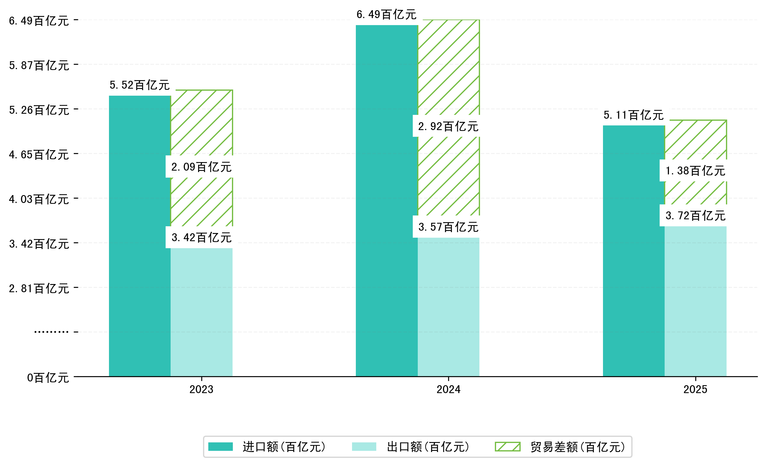 以人民币计,2025年1-7月吉林省贸易差额为138,3128,8795万元(贸易逆差),相比上年同期增加了153,4610,1596万元,同比增加-52.6%。