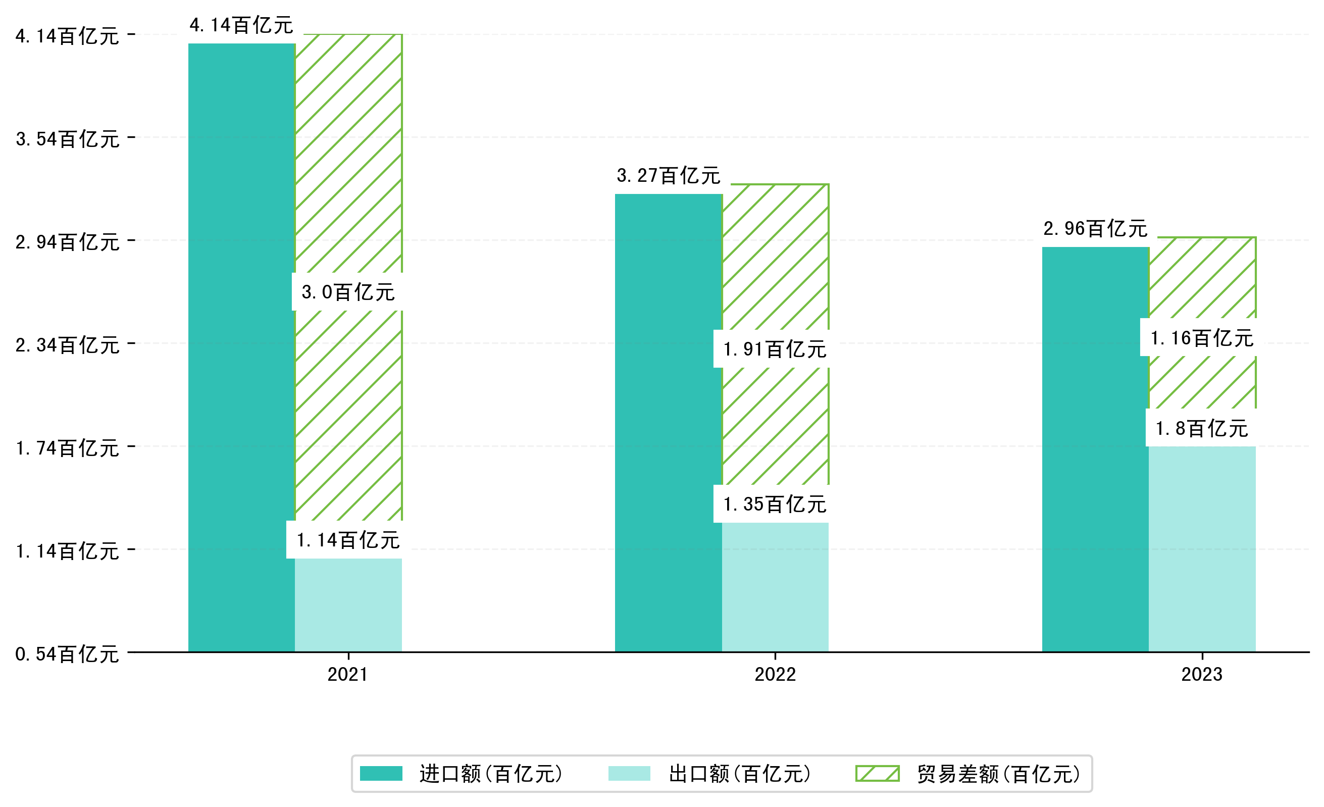 以人民币计,2023年1-4月吉林省贸易差额为116,2164,1392万元(贸易逆差),相比上年同期增加了75,1664,0646万元,同比增加-39.28%。
