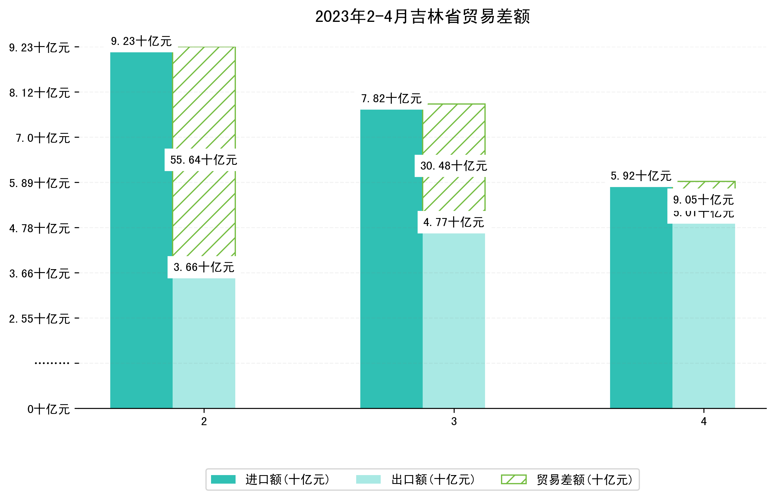 2023年4月吉林省进出口总额及进出口差额统计分析