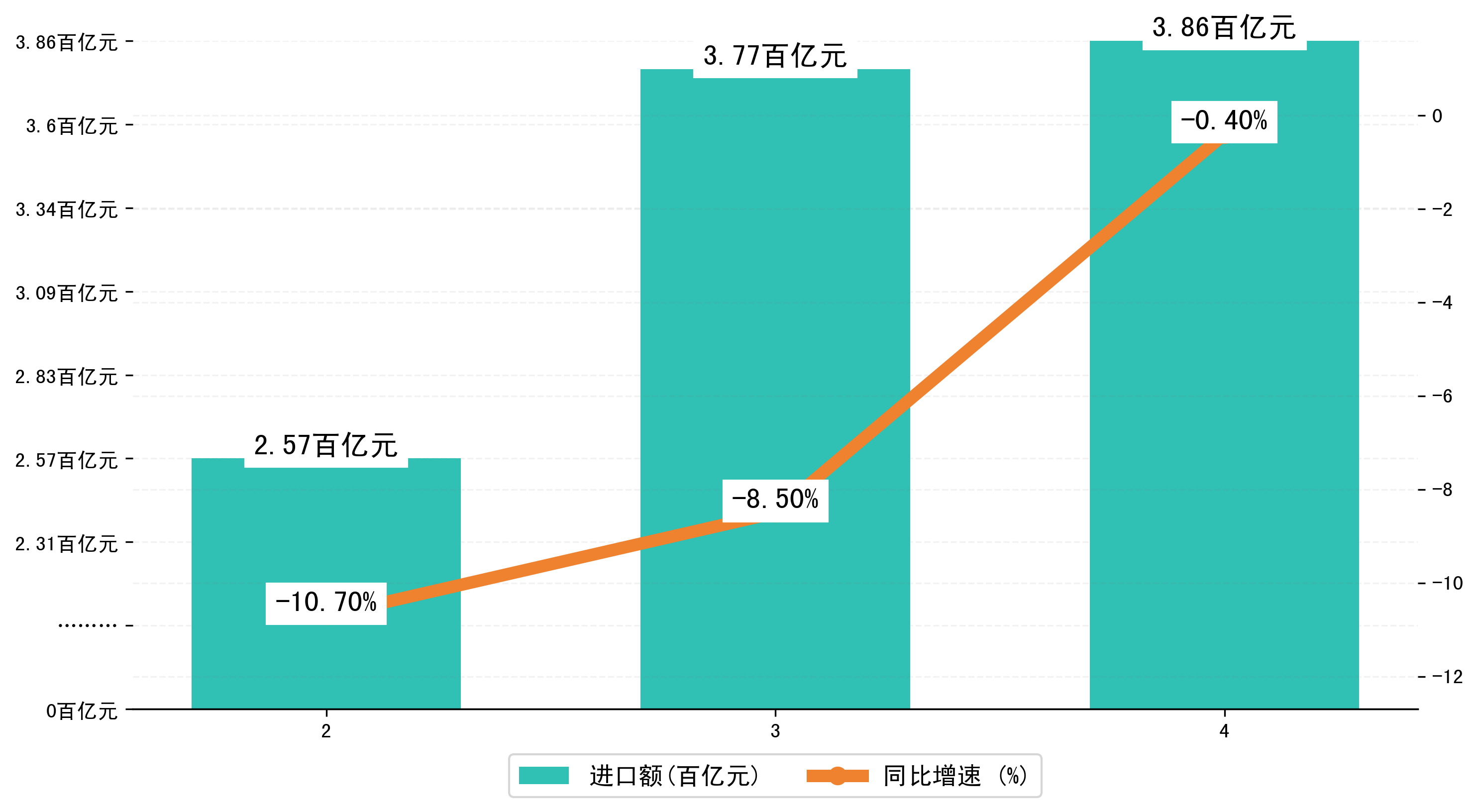 以人民币计,2024年4月辽宁省进口额为386,1222.6999万元,相比上月增加了8,7624.9675万元;相比上年同期增加了80,5758.1367万元,同比减少了-0.40%。