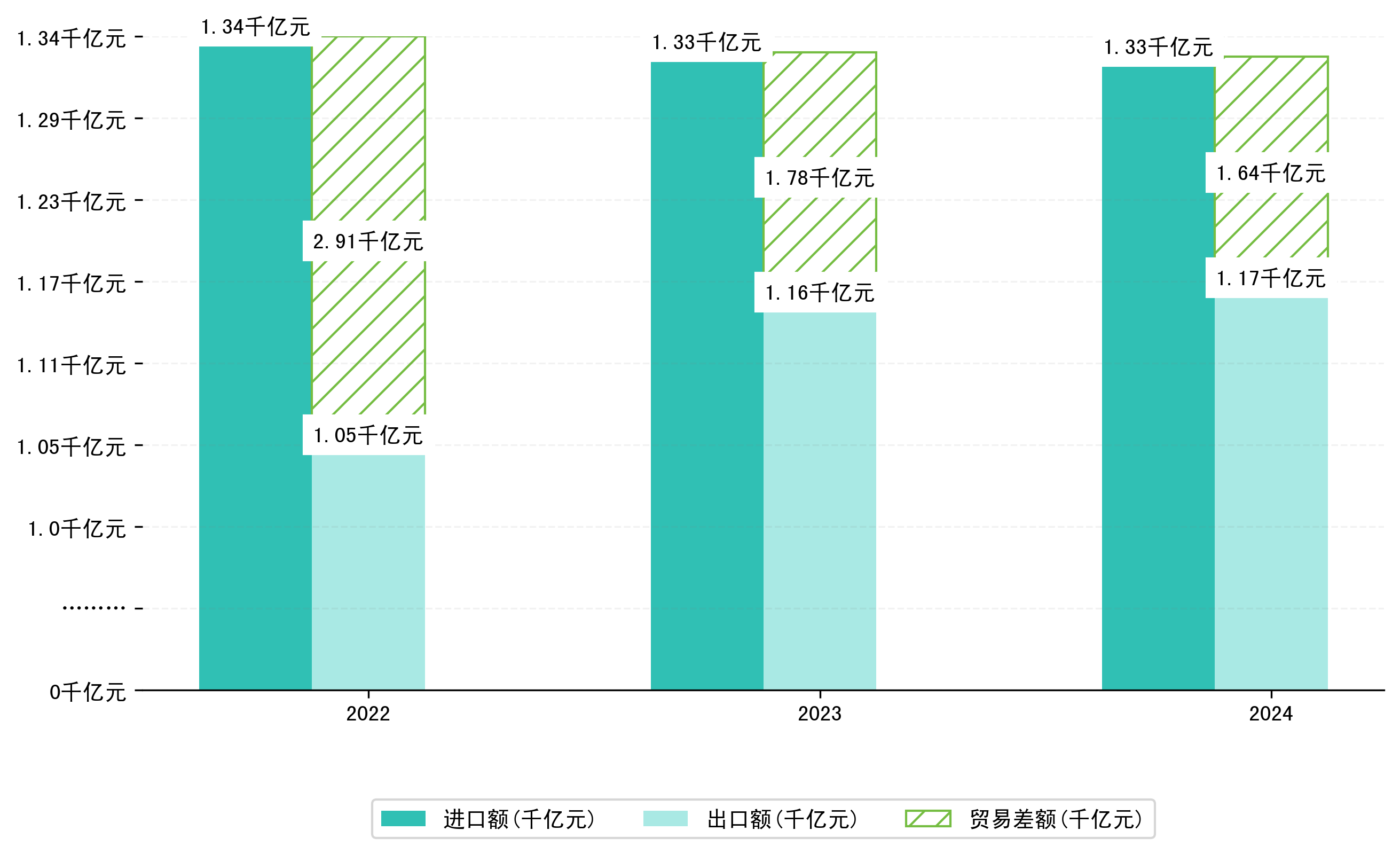 以人民币计,2024年1-4月辽宁省贸易差额为164,3188,6748万元(贸易逆差),相比上年同期增加了13,6286,7151万元,同比增加-7.66%。