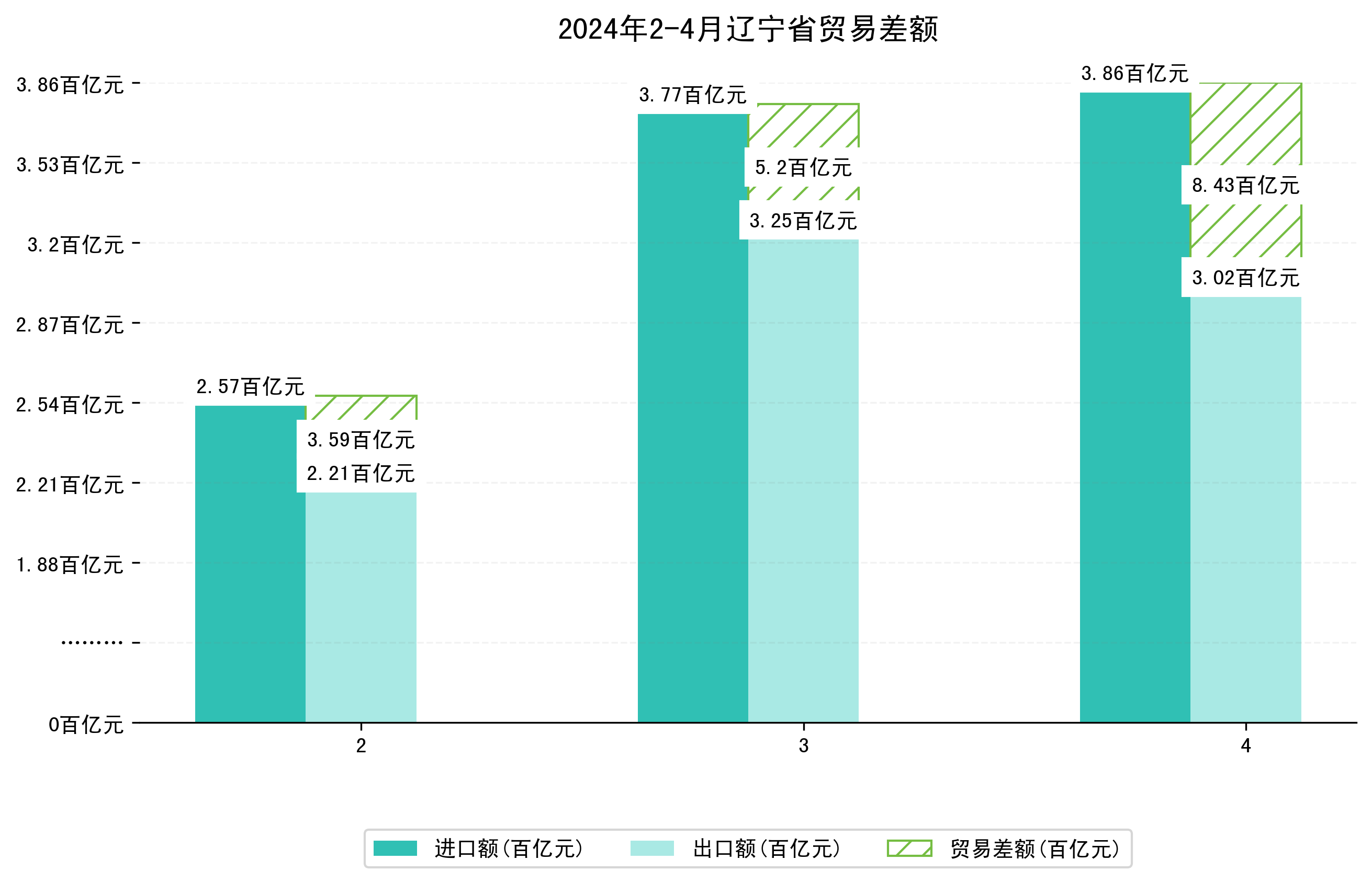 2024年4月辽宁省进出口总额及进出口差额统计分析