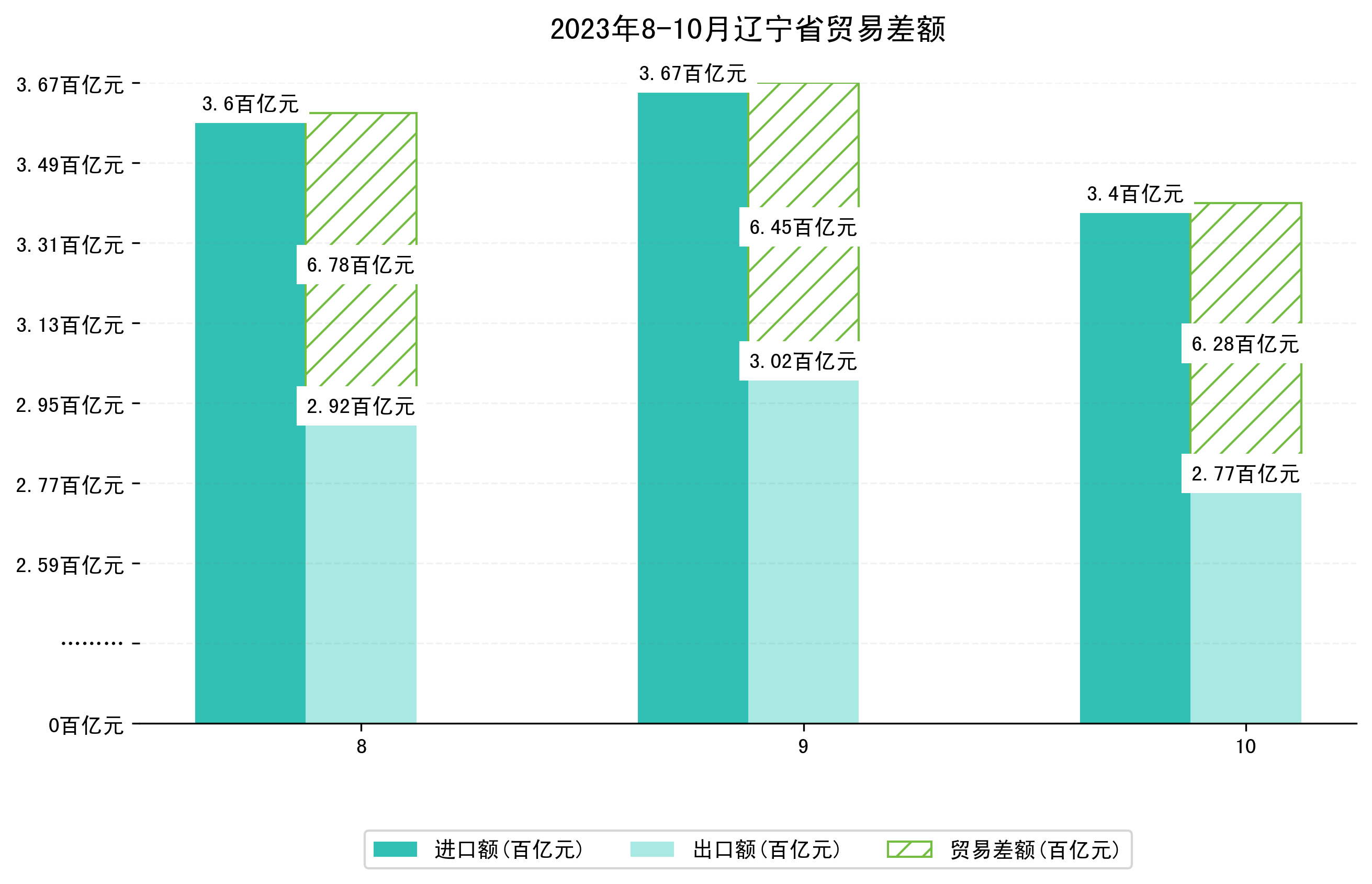 2023年10月辽宁省进出口总额及进出口差额统计分析