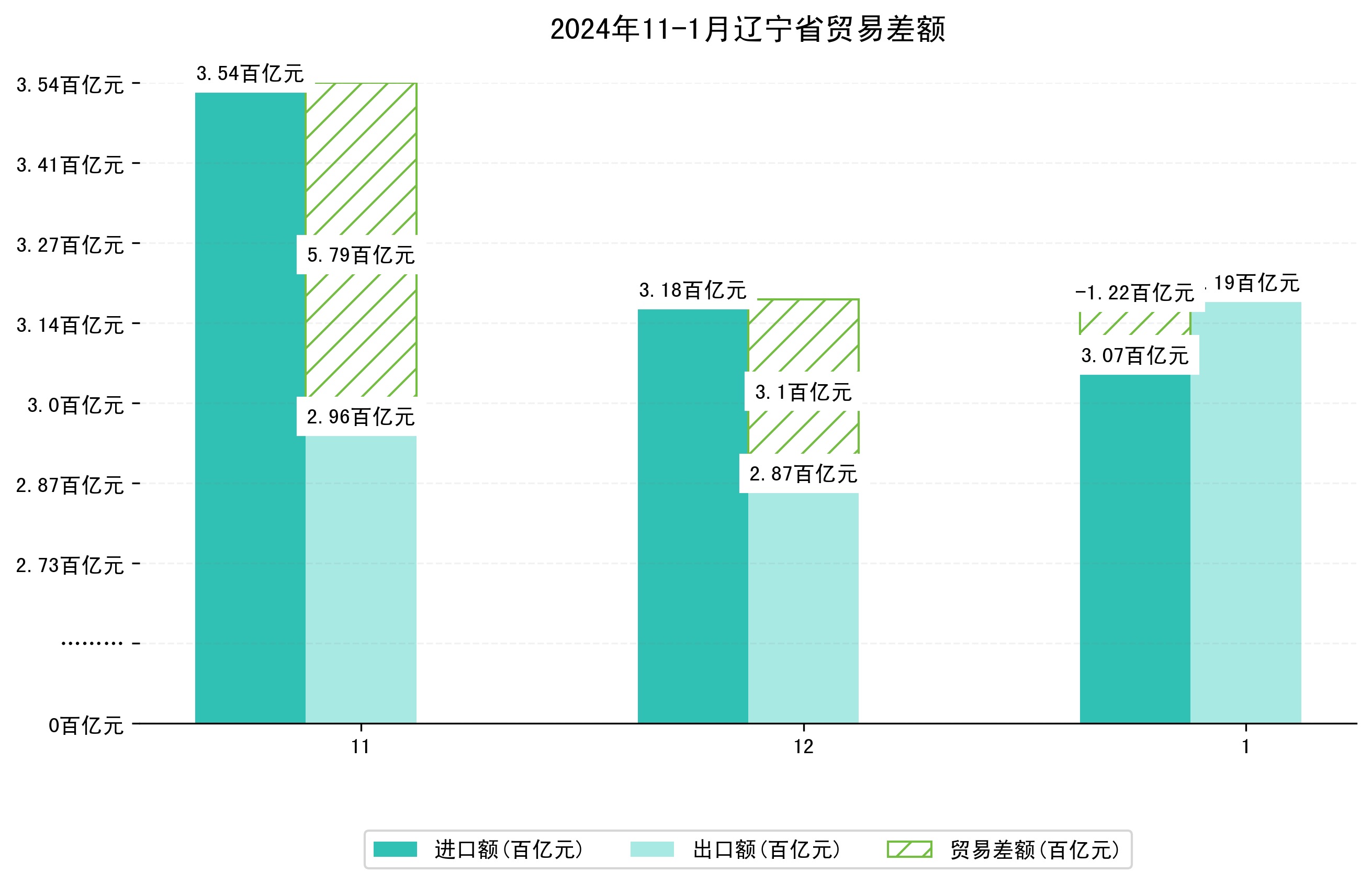 2024年1月辽宁省进出口总额及进出口差额统计分析