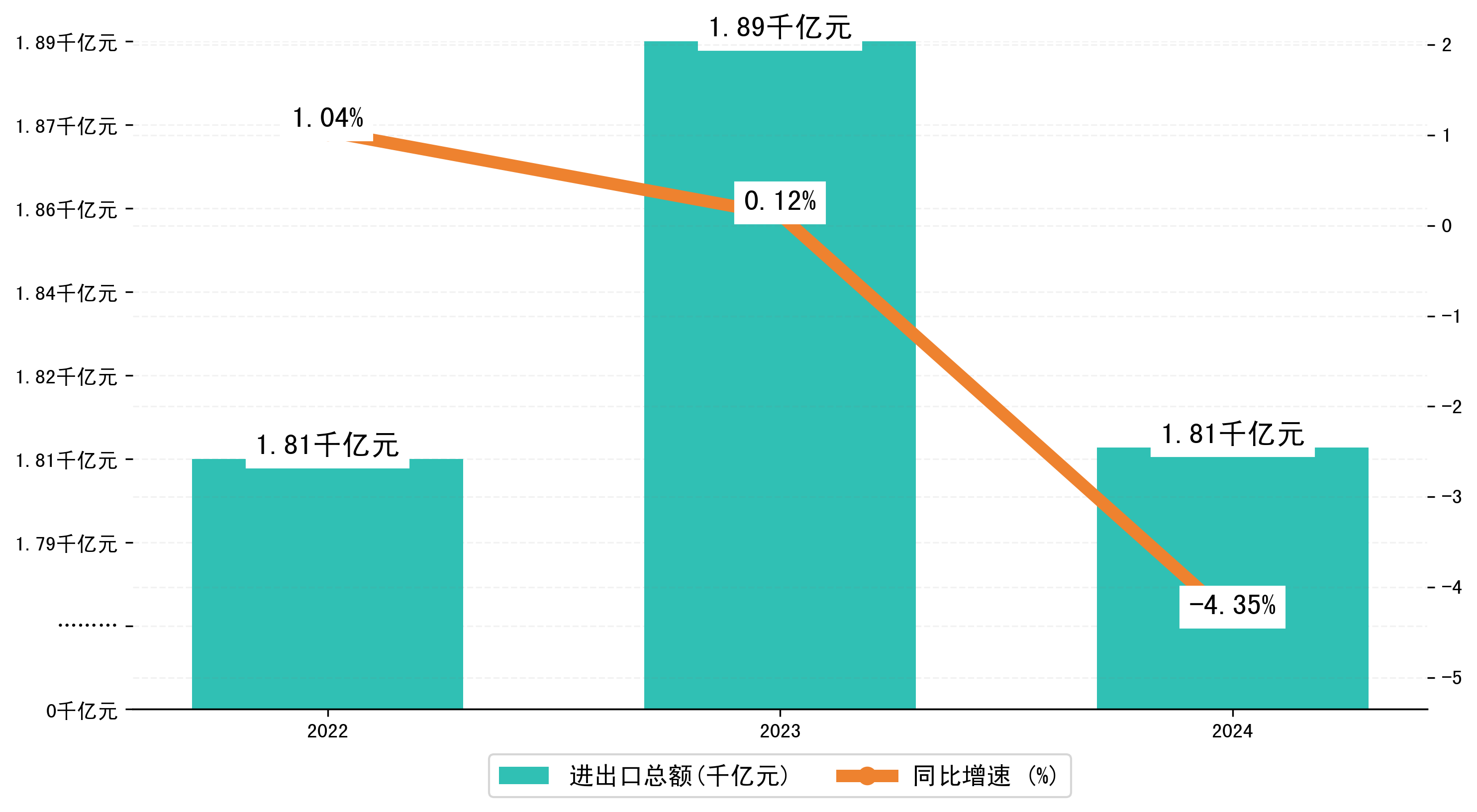 以人民币计,2024年1-3月辽宁省进出口总额为1807,3360.5783万元,相比上年同期减少了82,2451.0903万元,同比减少了-4.10%。