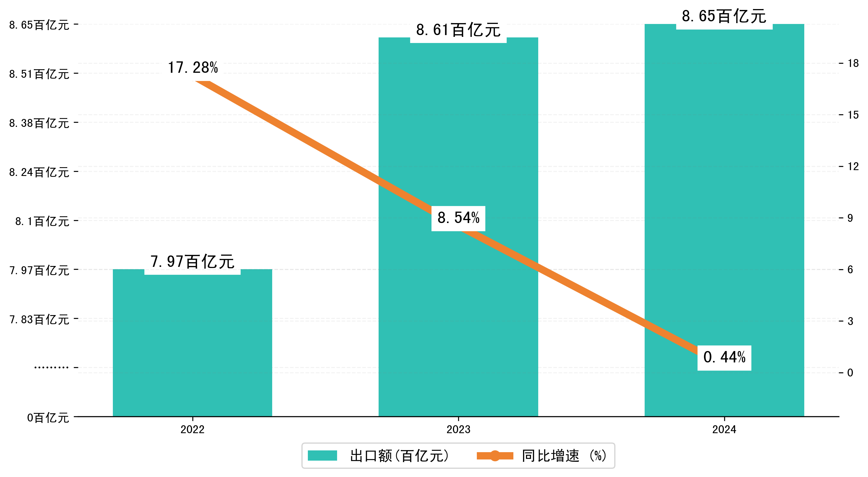 以人民币计,2024年1-3月辽宁省出口额为864,8250.1539万元,相比上年同期增加了3,7621.4667万元,同比增加了1.30%。