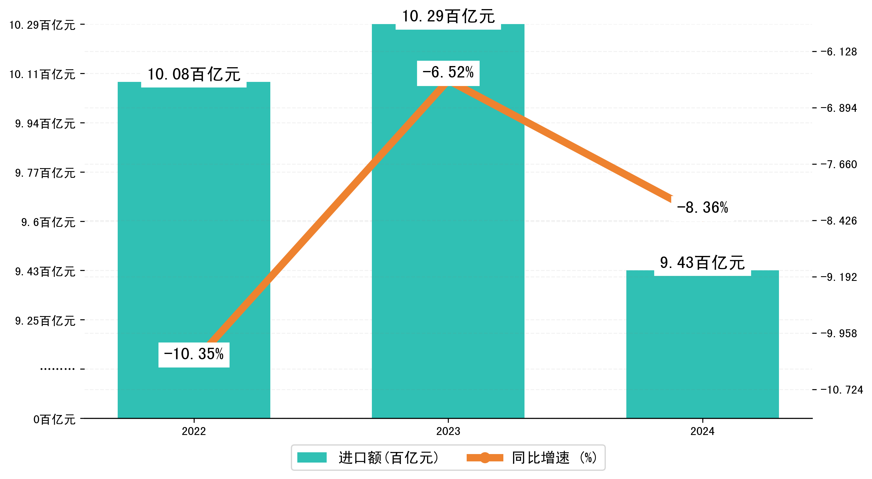 以人民币计,2024年1-3月辽宁省进口额为942,5110.4244万元,相比上年同期减少了86,0072.557万元,同比减少了-8.50%。