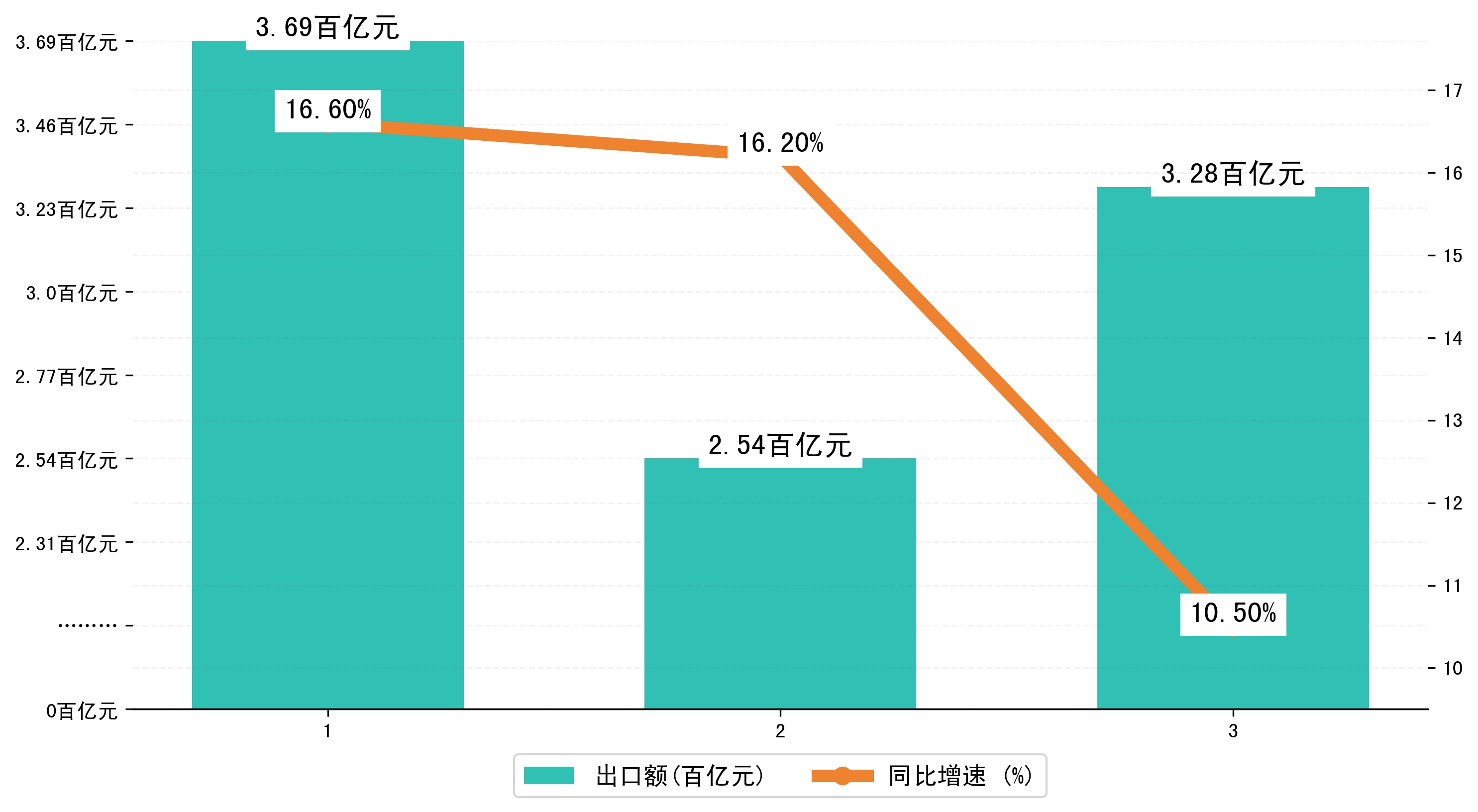 以人民币计,2025年1-3月辽宁省出口额为951,0744.4723万元,相比上年同期增加了86,2494.3184万元,同比增加了10.50%。
