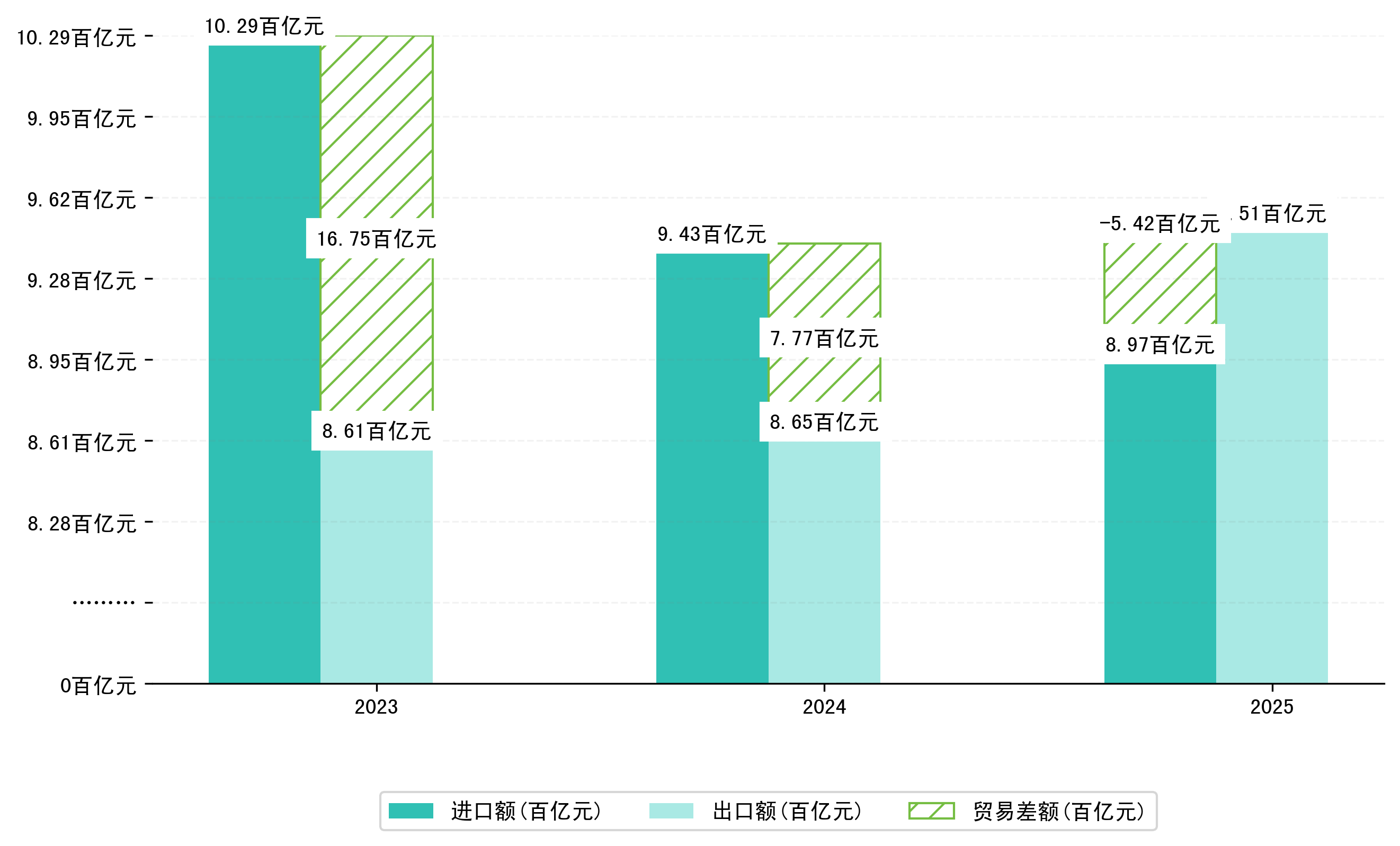 以人民币计,2025年3月辽宁省贸易差额为19,7284,5165万元(贸易逆差),相比上月增加了5,2691,1532万元,即7068,4829万美元;相比上年同期增加了32,2921,1623万元,同比增加-62.08%。