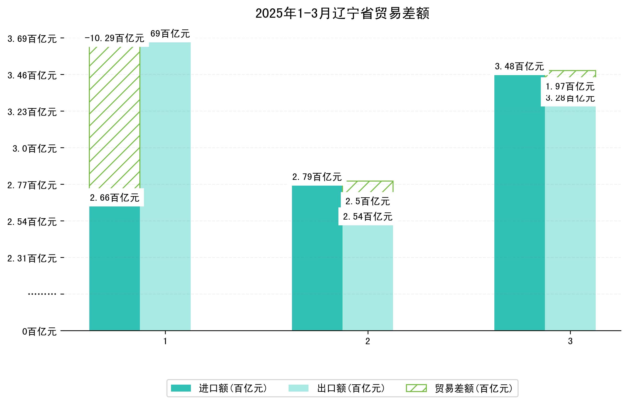 2025年3月辽宁省进出口总额及进出口差额统计分析