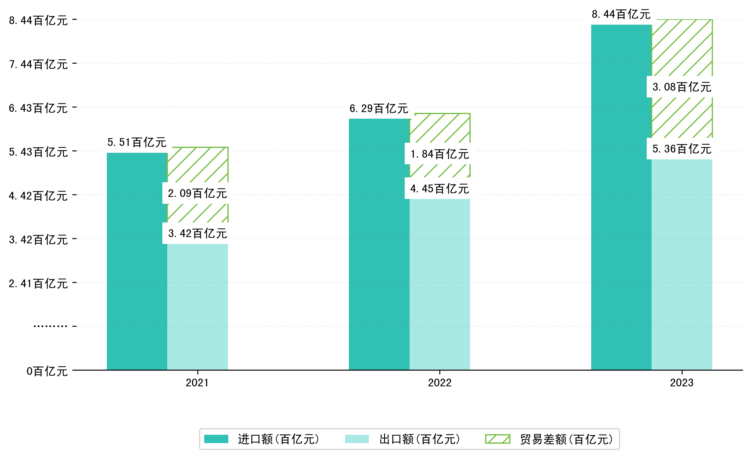 (图八:2021-2023年1-9月内蒙古自治区累计贸易差额)