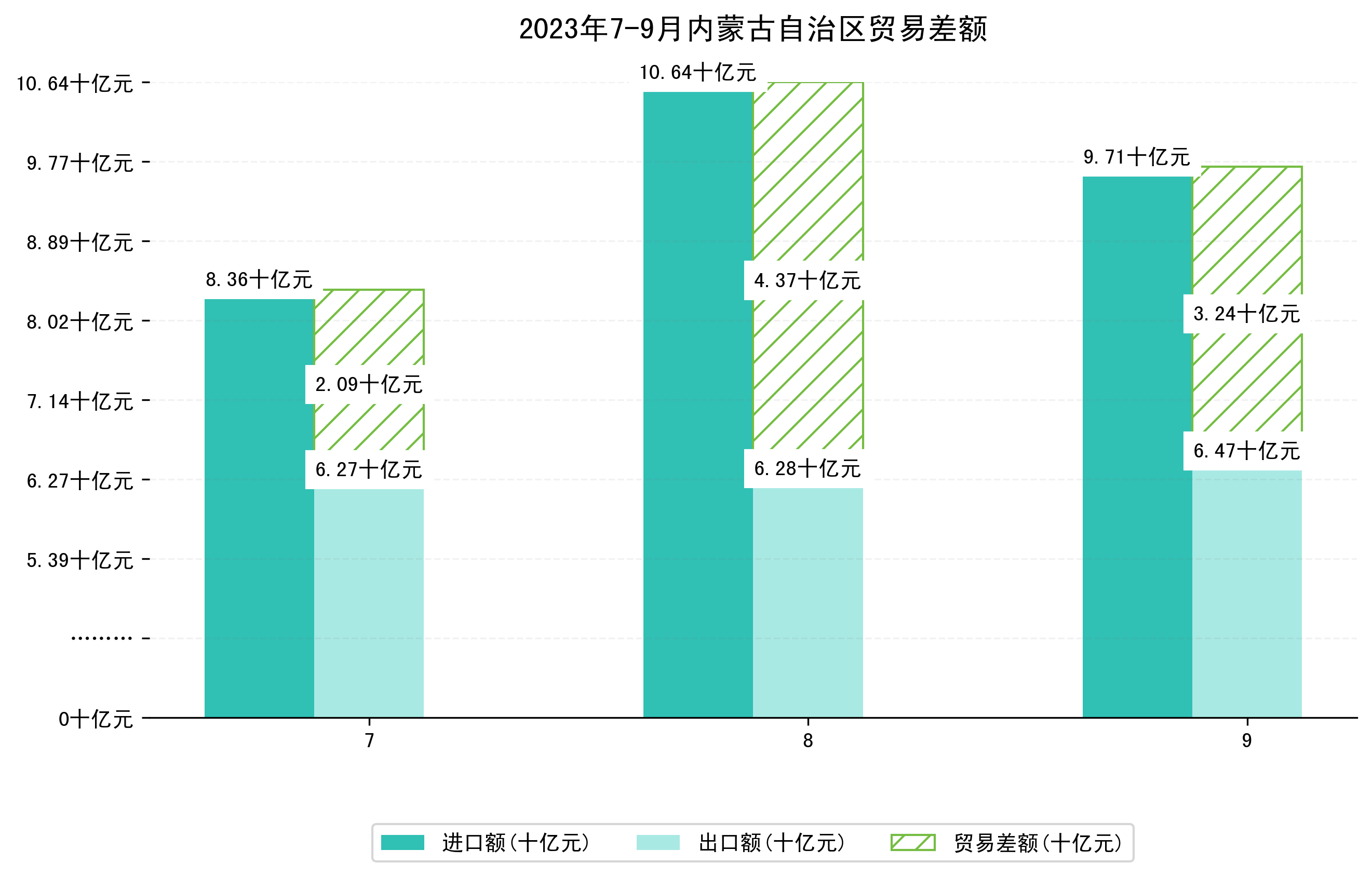 (图一:2023年7-9月内蒙古自治区进出口总额)