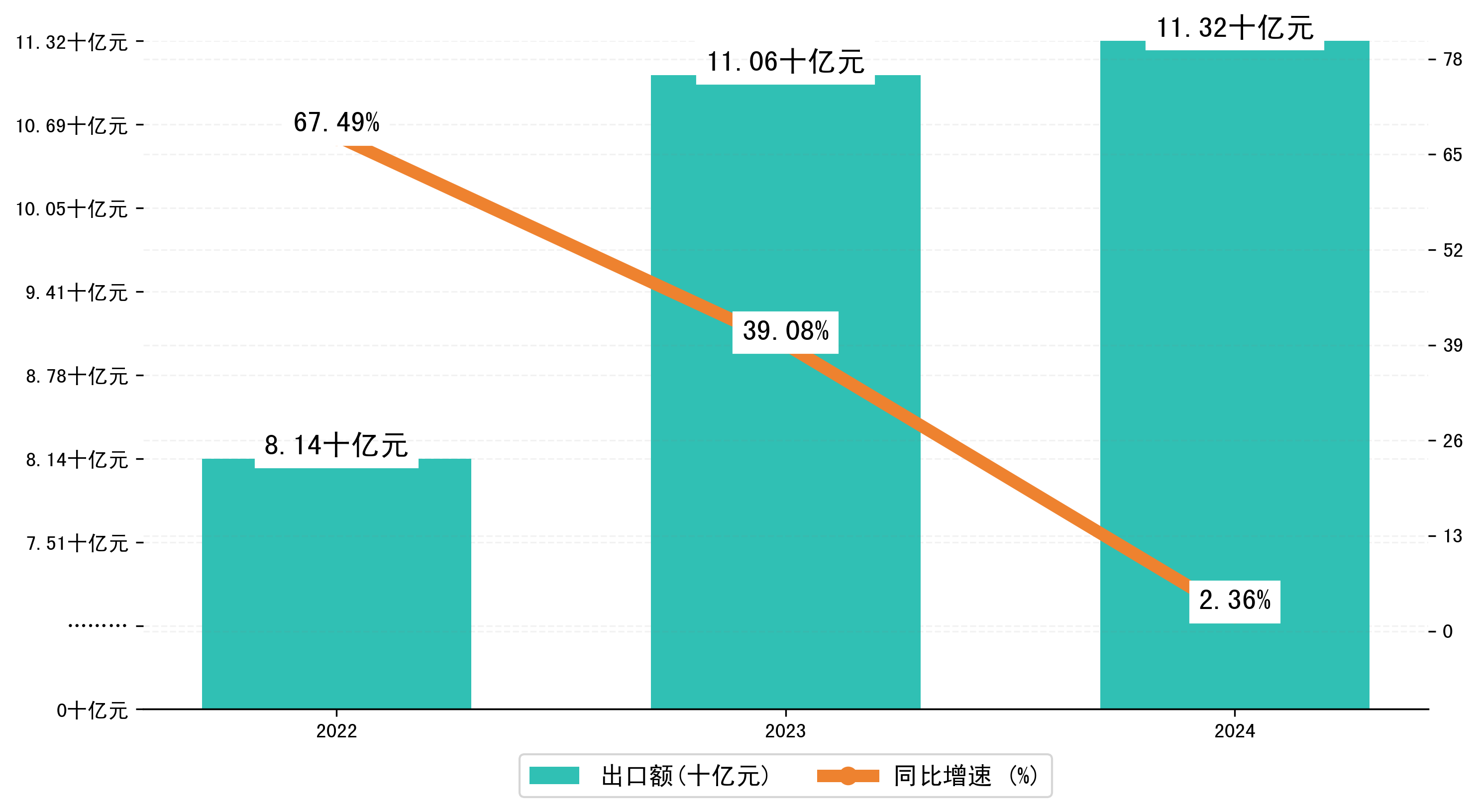 以美元计,2024年1-2月内蒙古自治区出口额为15,9355.8624万美元,相比上年同期增加了1357.7566万美元,同比增加1.10%。