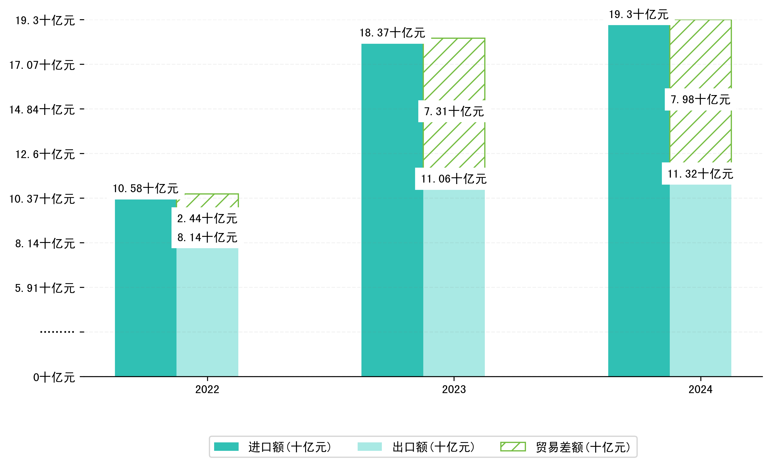以人民币计,2024年1-2月内蒙古自治区进口额为192,9901.7951万元,相比上年同期增加了9,2490.3445万元,同比增加了3.40%。