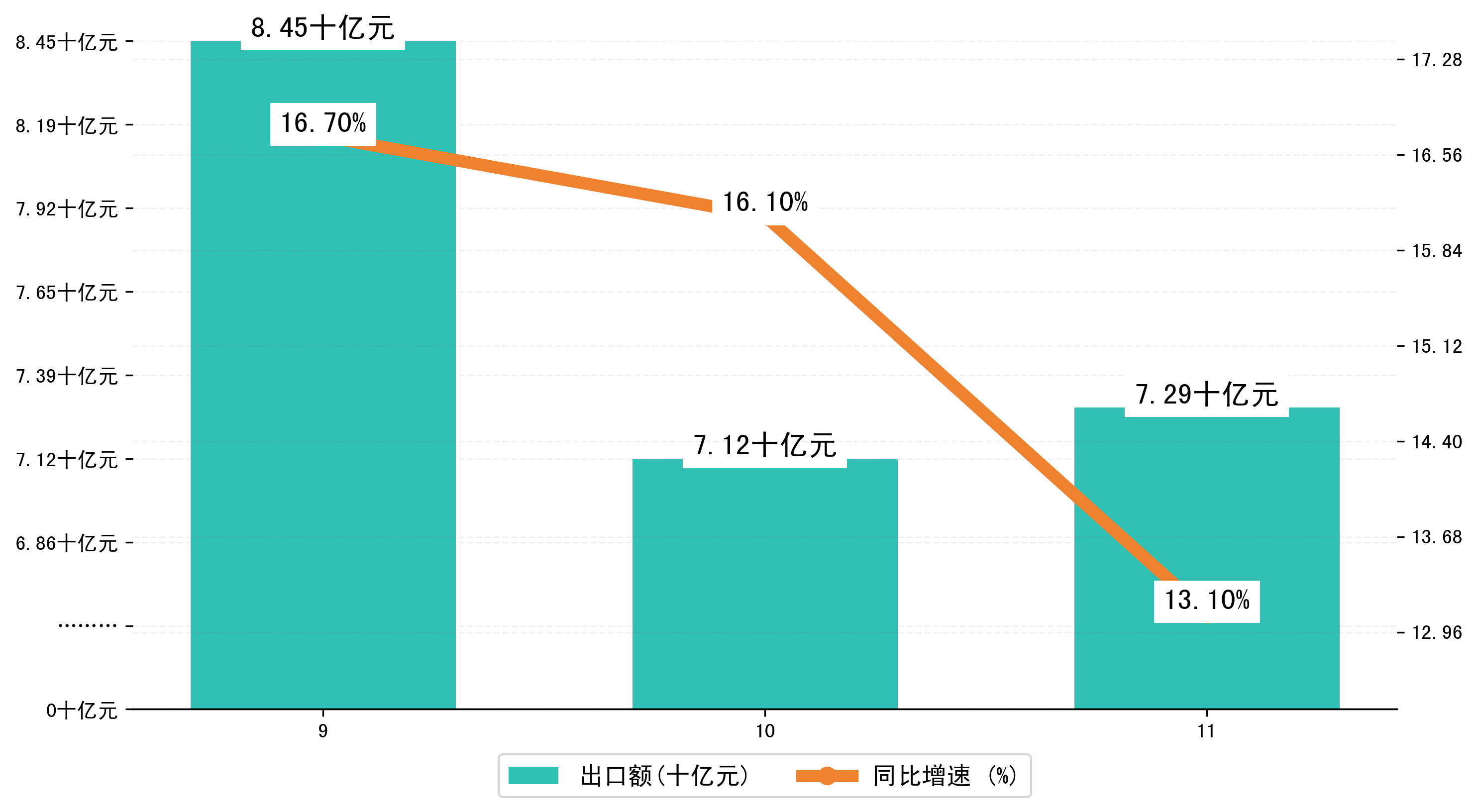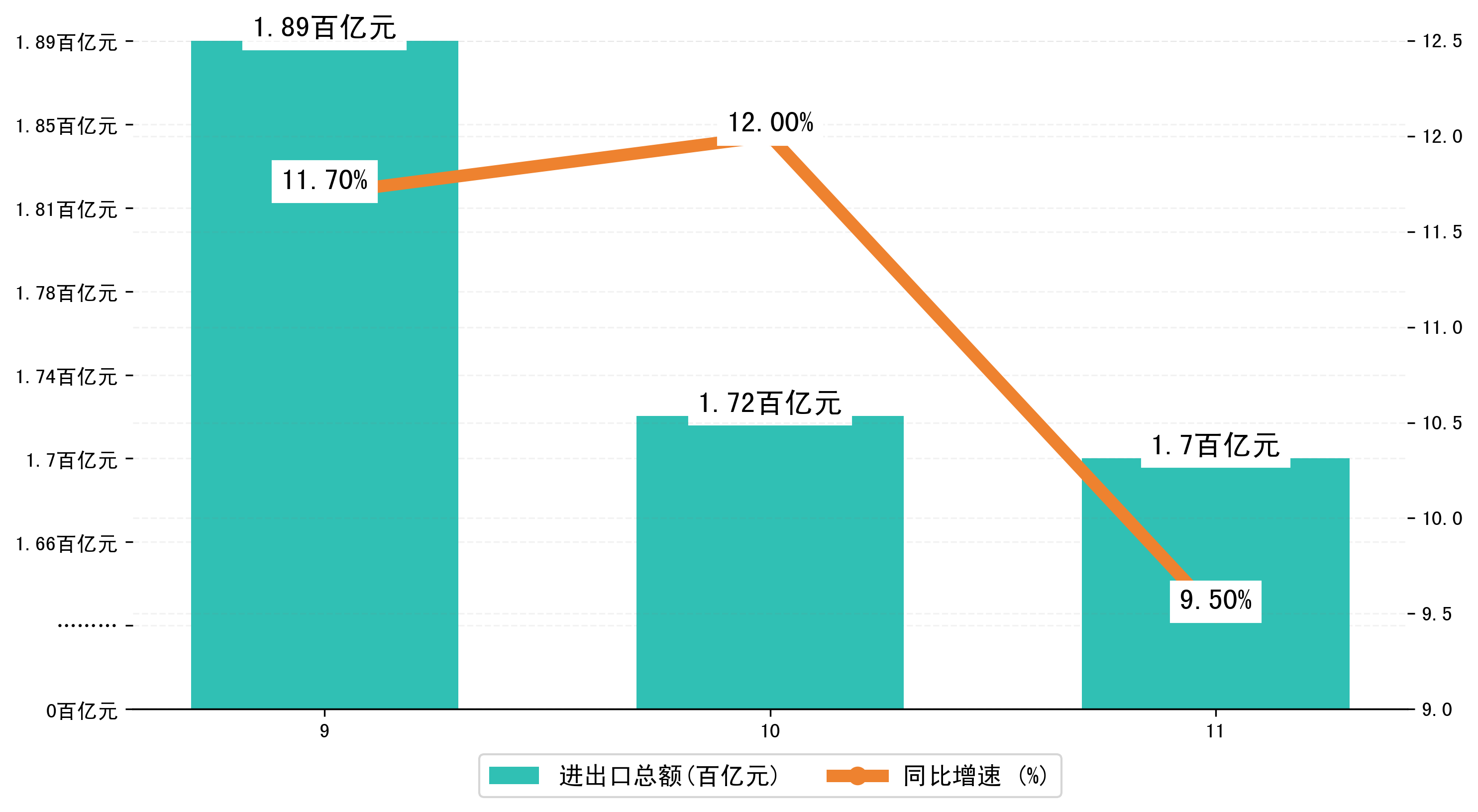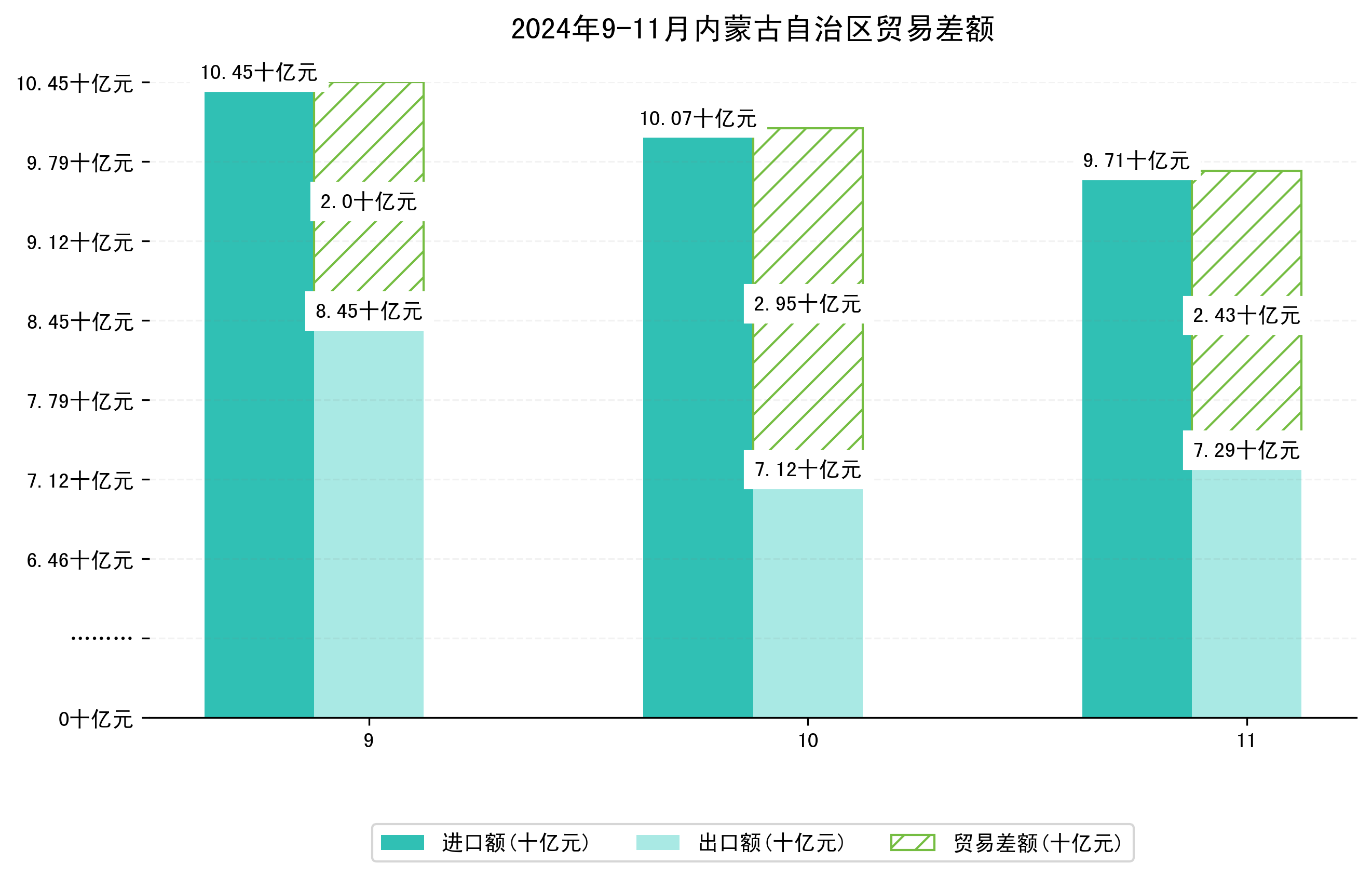 (图一:2024年9-11月内蒙古自治区进出口总额)