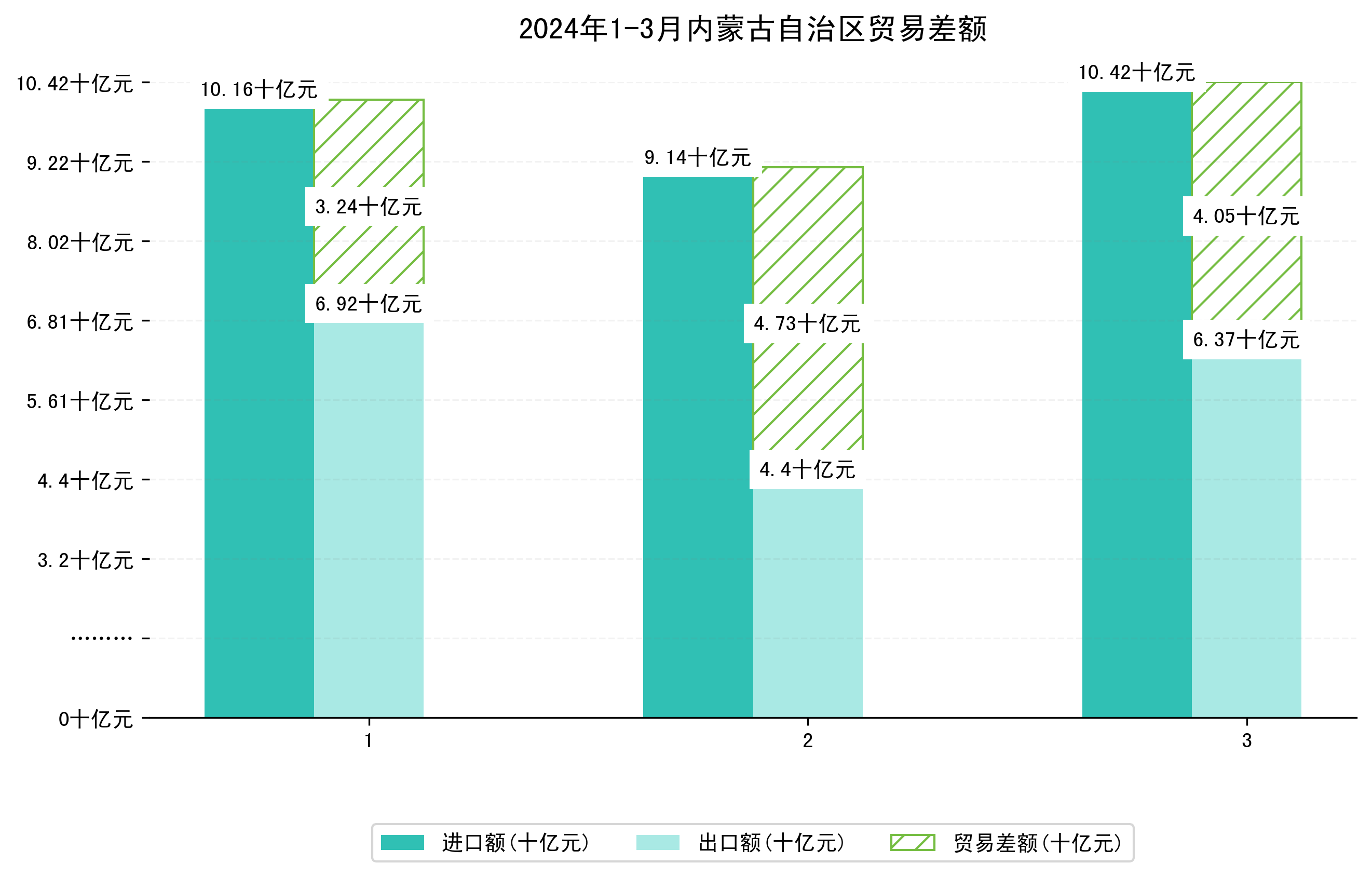 2024年3月内蒙古自治区进出口总额及进出口差额统计分析
