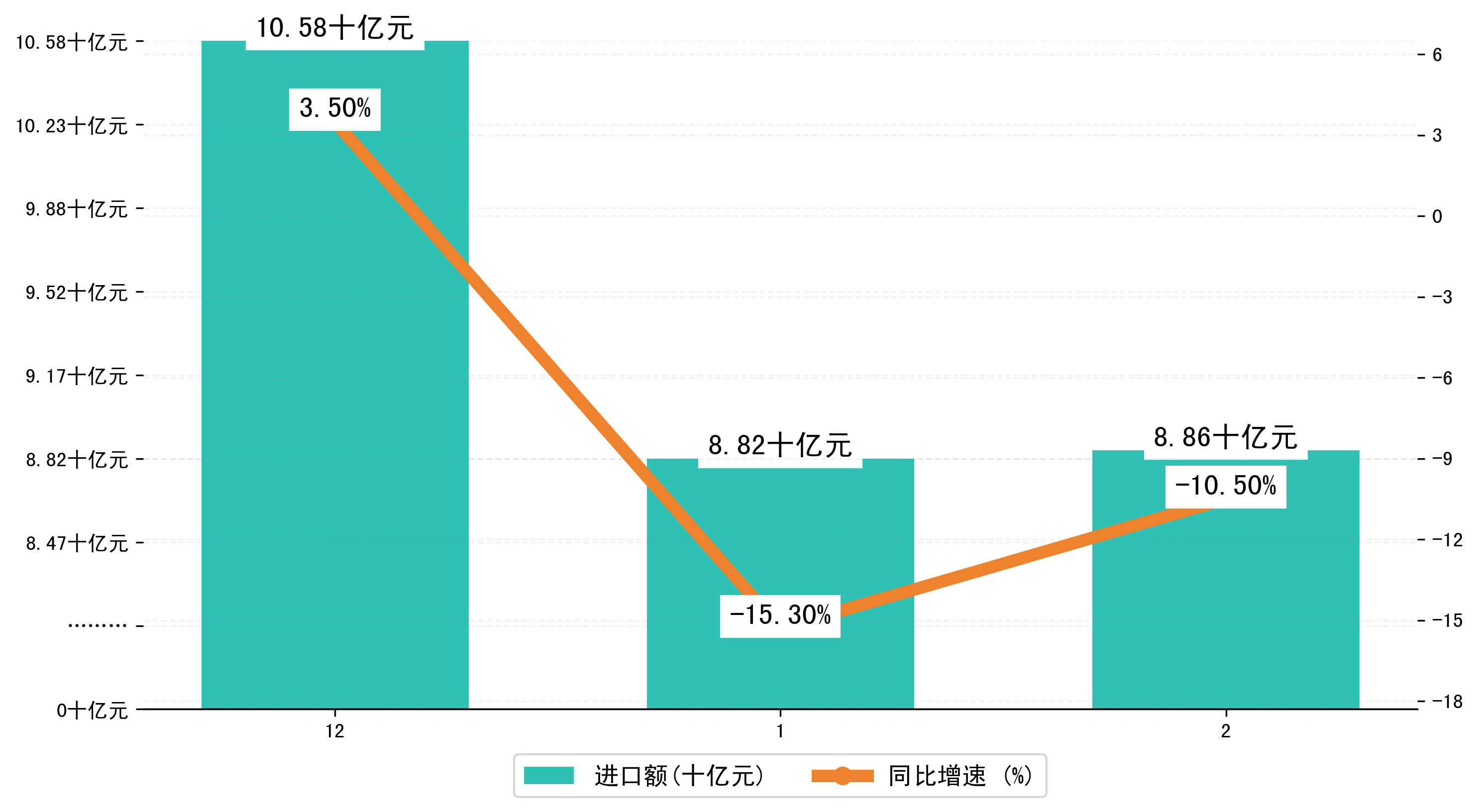以人民币计,2025年2月内蒙古自治区进口额为88,5536.215万元,相比上月增加了3508.4409万元;相比上年同期减少了2,8133.6489万元,同比减少了-10.50%。