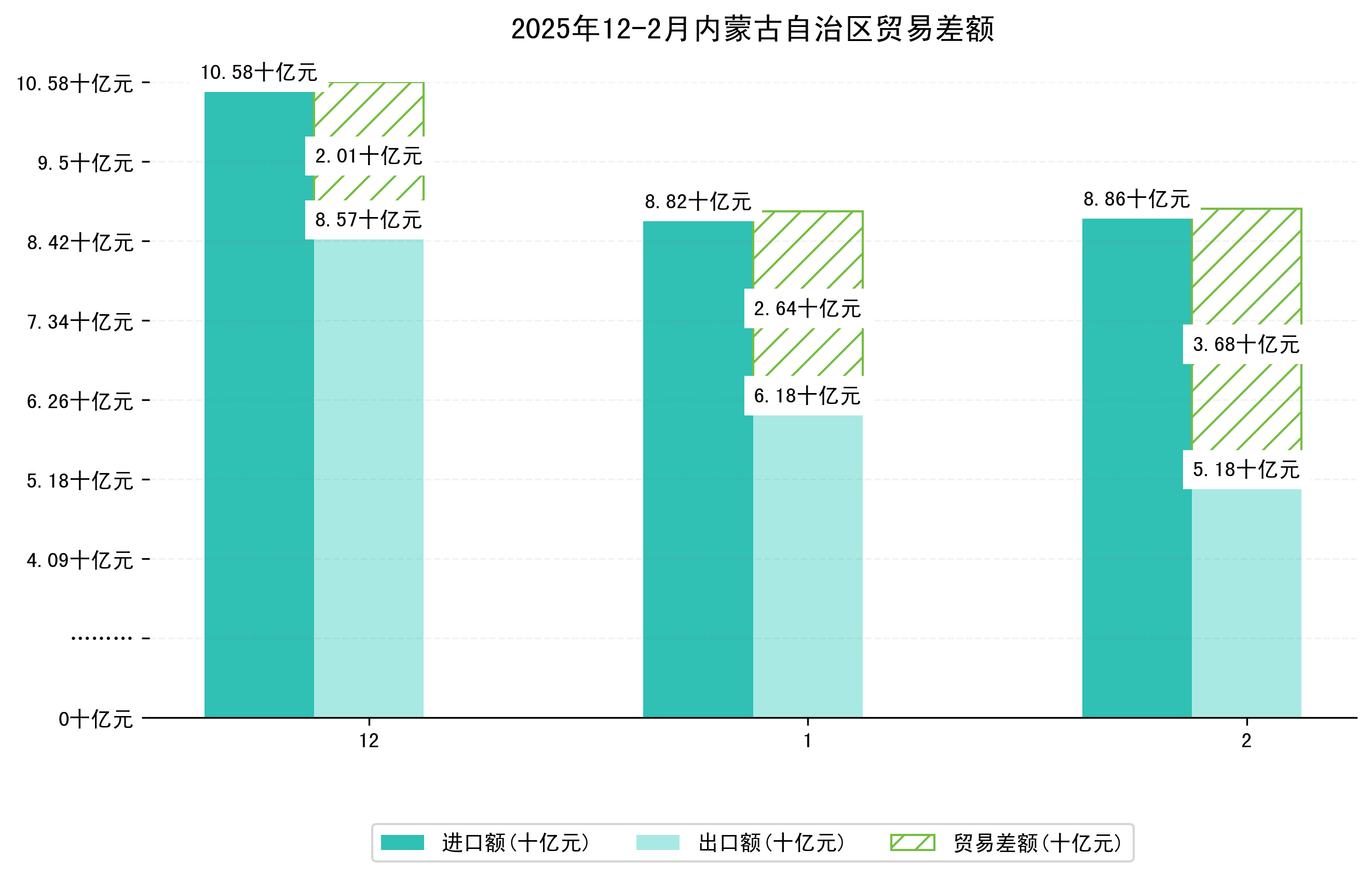(图一:2025年12-2月内蒙古自治区进出口总额)