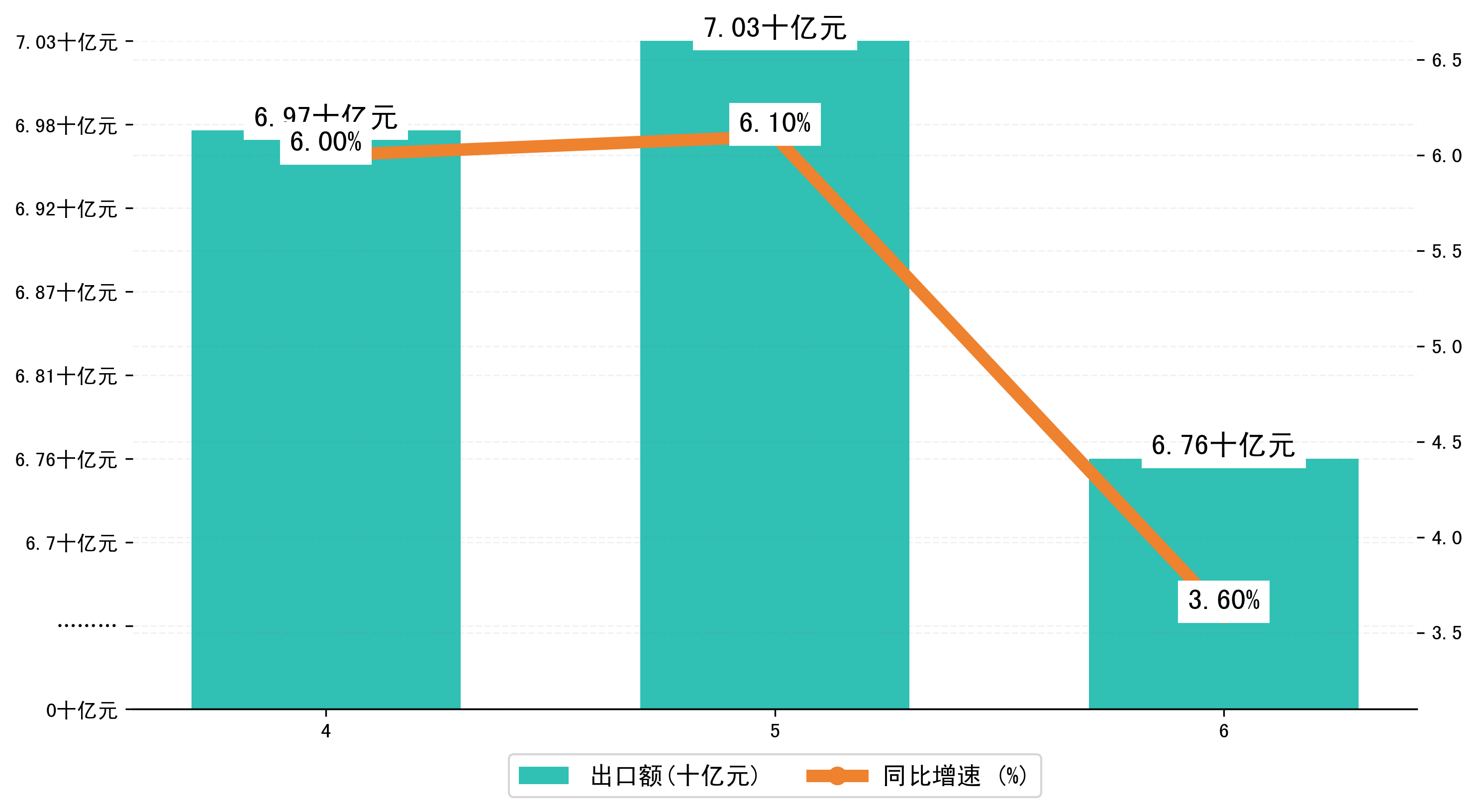 以人民币计,2025年6月内蒙古自治区出口额为67,5547.0037万元,相比上月减少了2,7504.6901万元;相比上年同期减少了5,1000.6004万元,同比增加了3.60%。