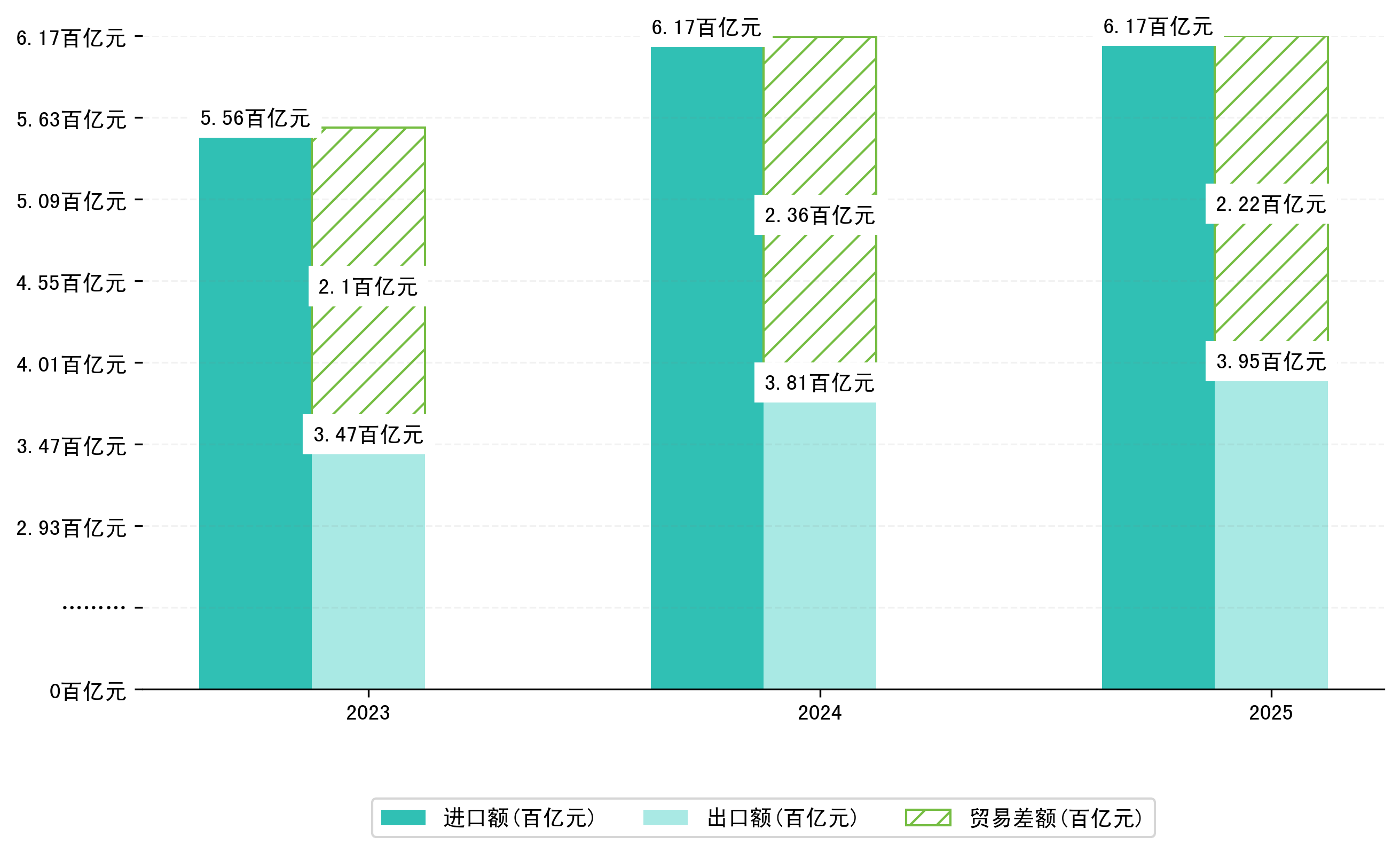 (图八:2023-2025年1-6月内蒙古自治区累计贸易差额)