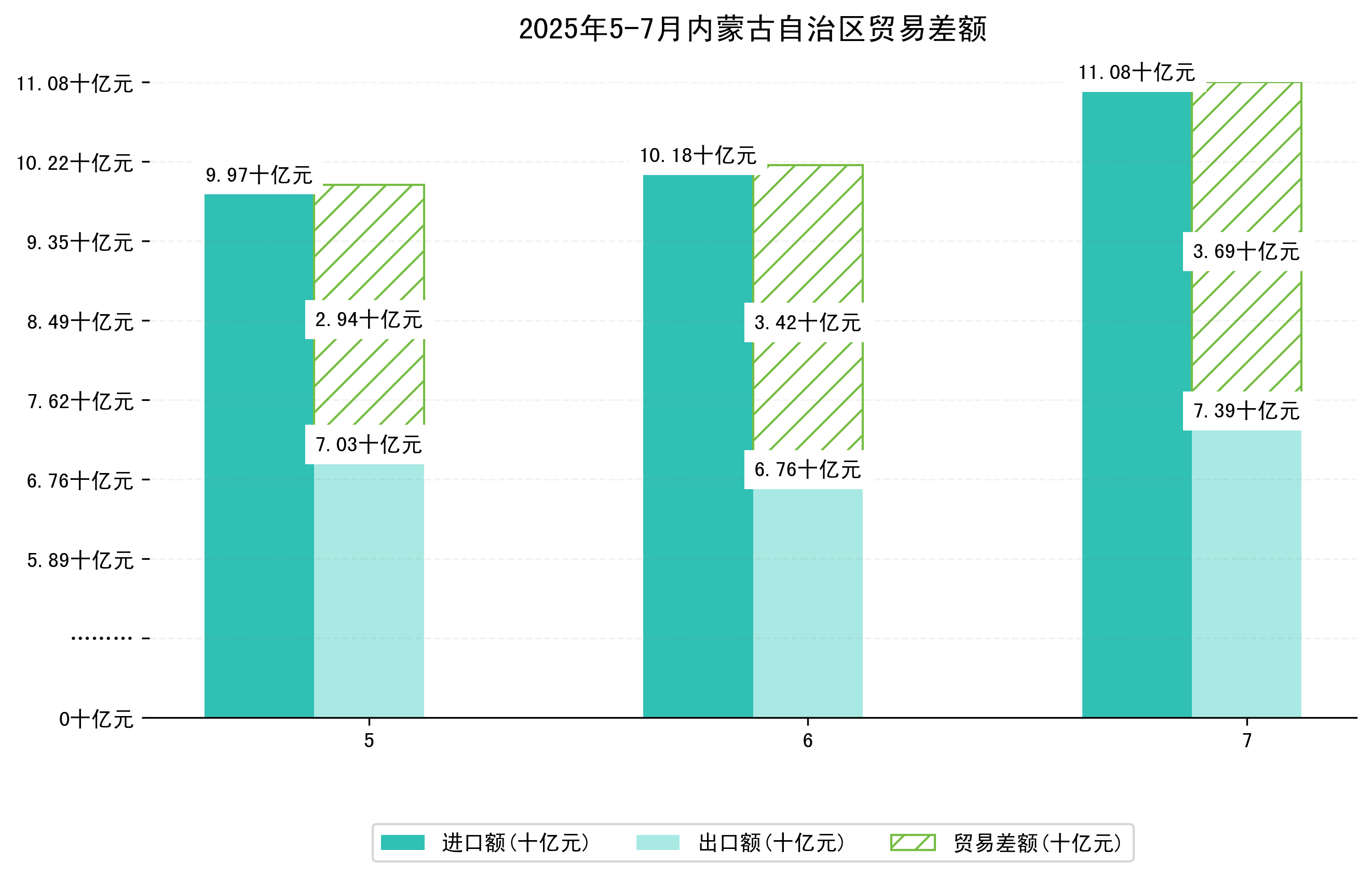 2025年7月内蒙古自治区进出口总额及进出口差额统计分析