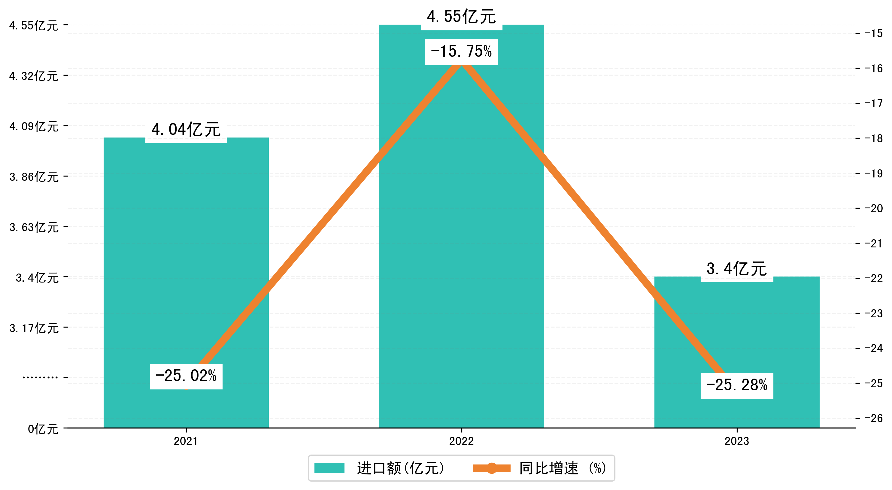 以美元计,2023年1-1月宁夏回族自治区进口额为4872.0651万美元,相比上年同期减少了2275.3245万美元,同比减少-32.90%。
