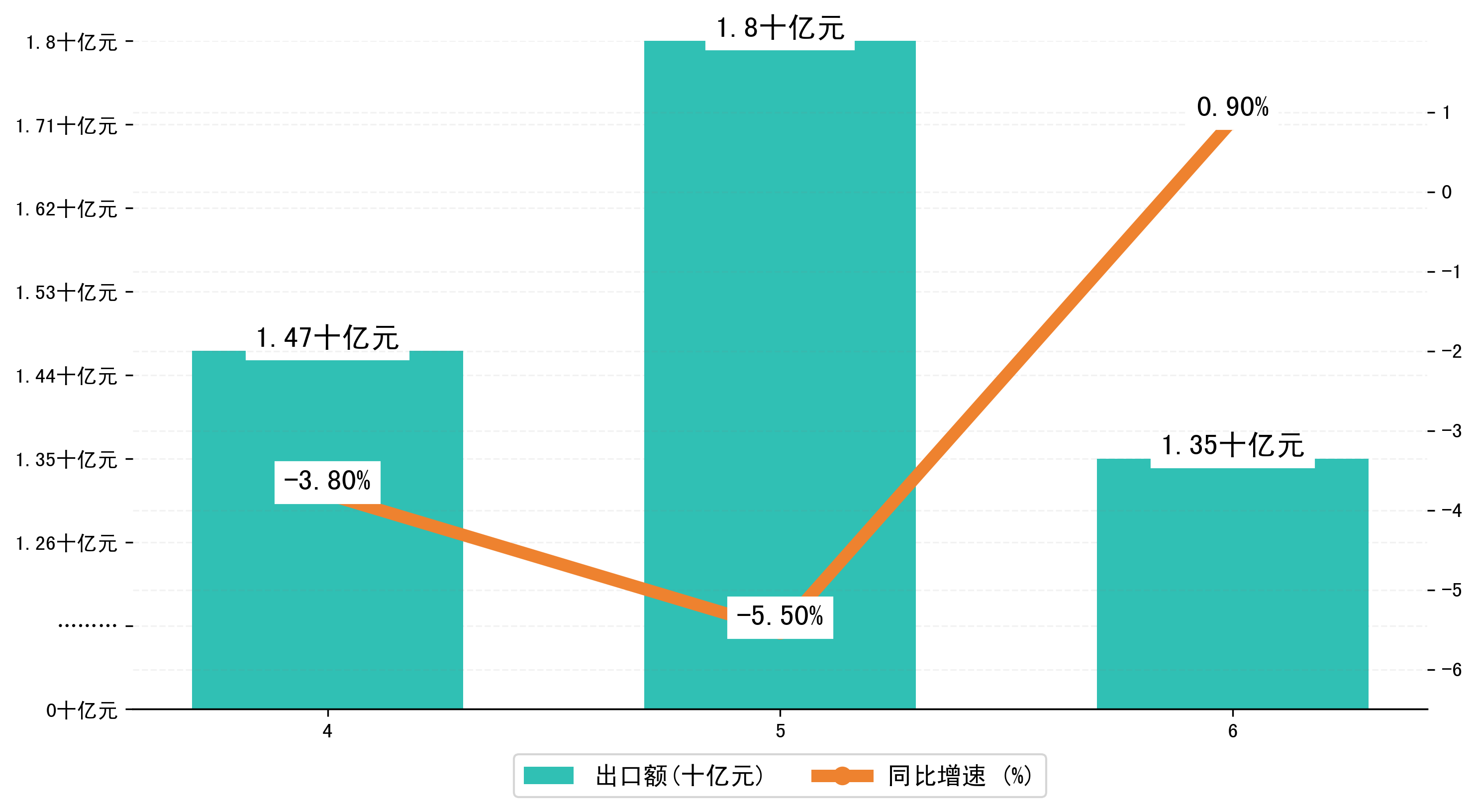 二、宁夏回族自治区前6月累计出口总额及差额统计