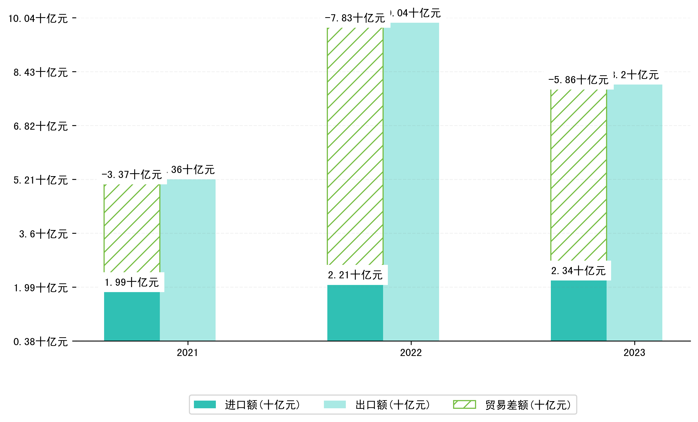 以美元计,2023年1-6月宁夏回族自治区贸易差额为8,5173,1186万美元(贸易顺差),相比上年同期减少了3,6478,4203万美元,同比减少-29.99%。