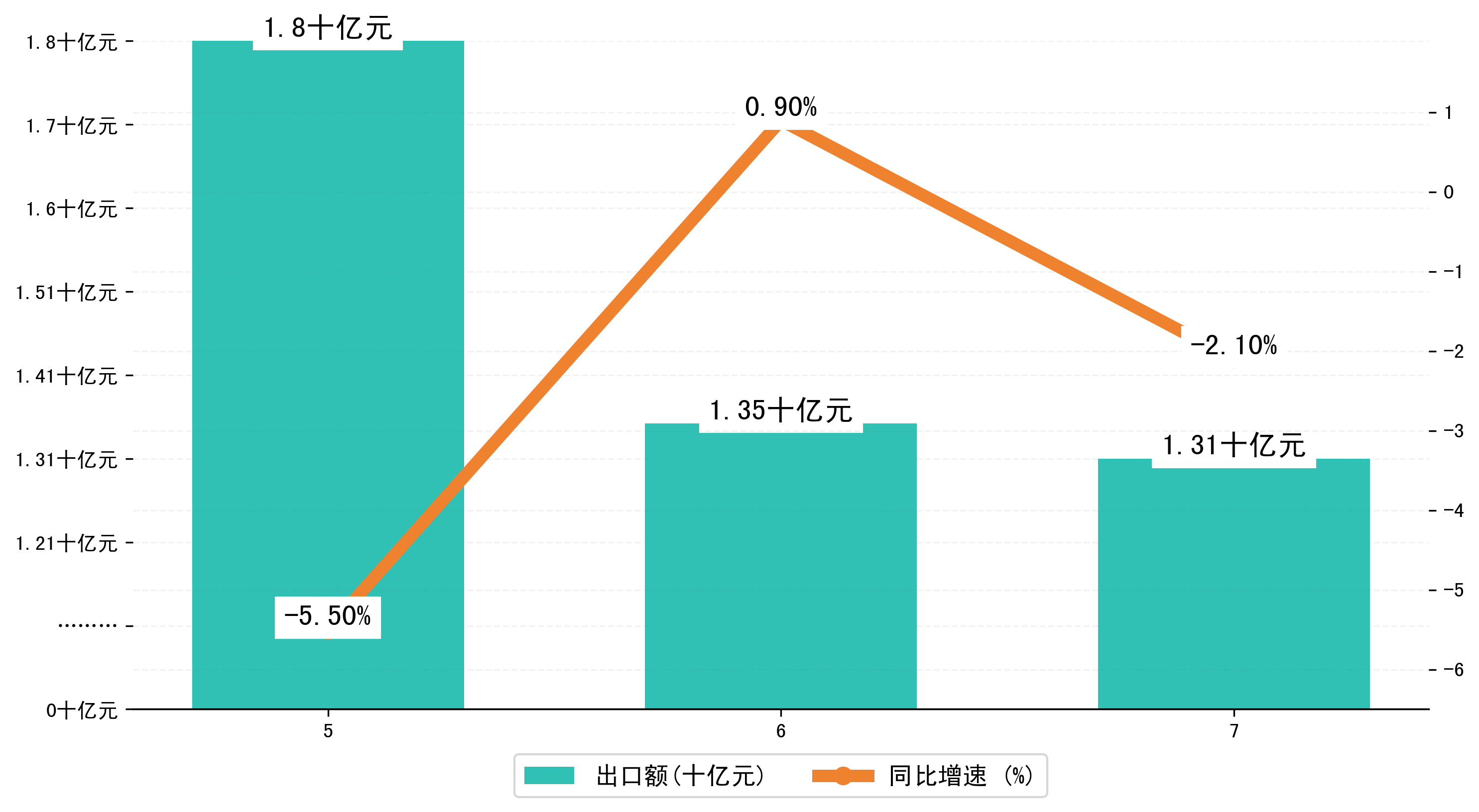 二、宁夏回族自治区前7月累计出口总额及差额统计