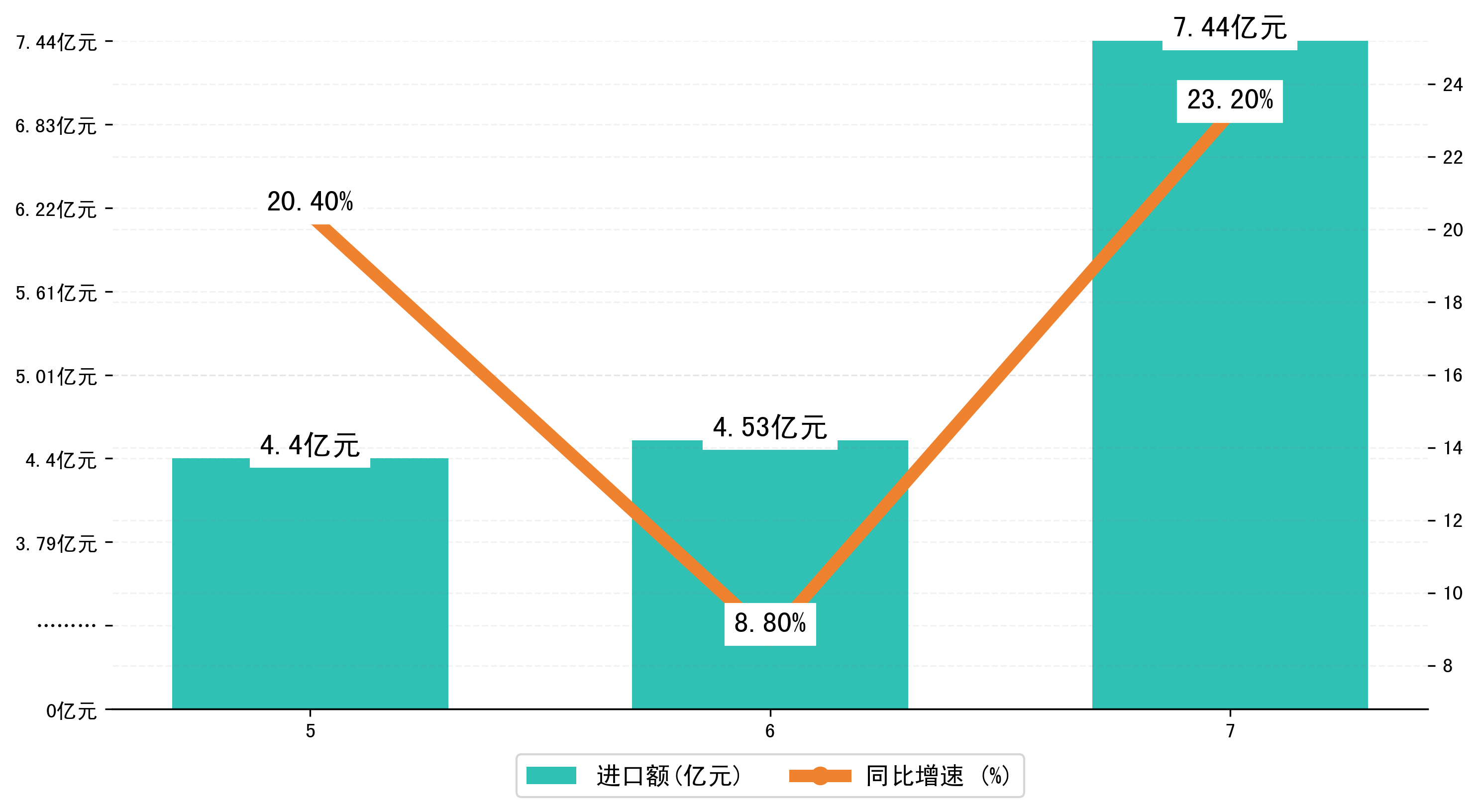 (图三:2023年5-7月宁夏回族自治区进口额)