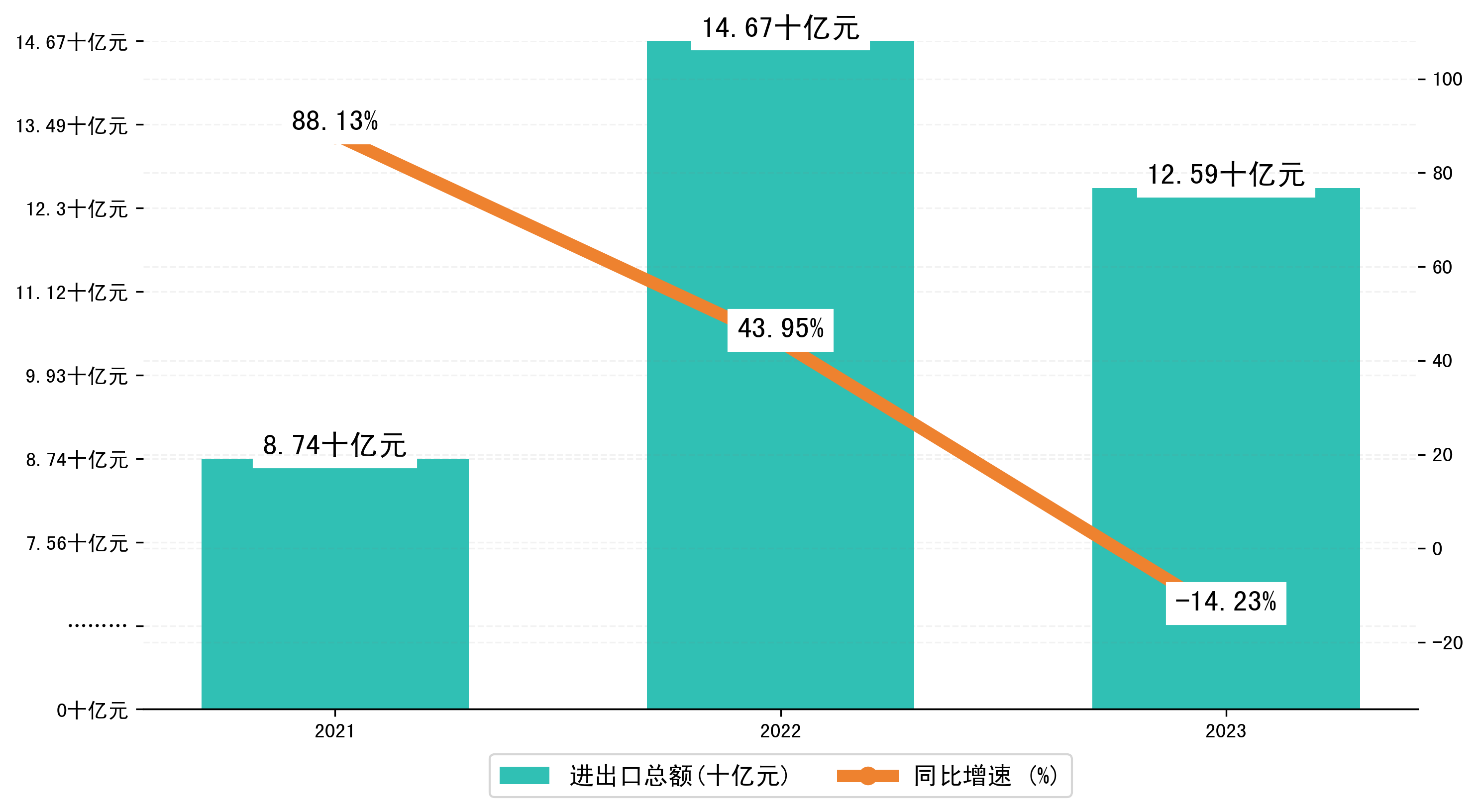 以人民币计,2023年1-7月宁夏回族自治区进出口总额为125,8577.2165万元,相比上年同期减少了20,8795.0288万元,同比增加了3.10%。