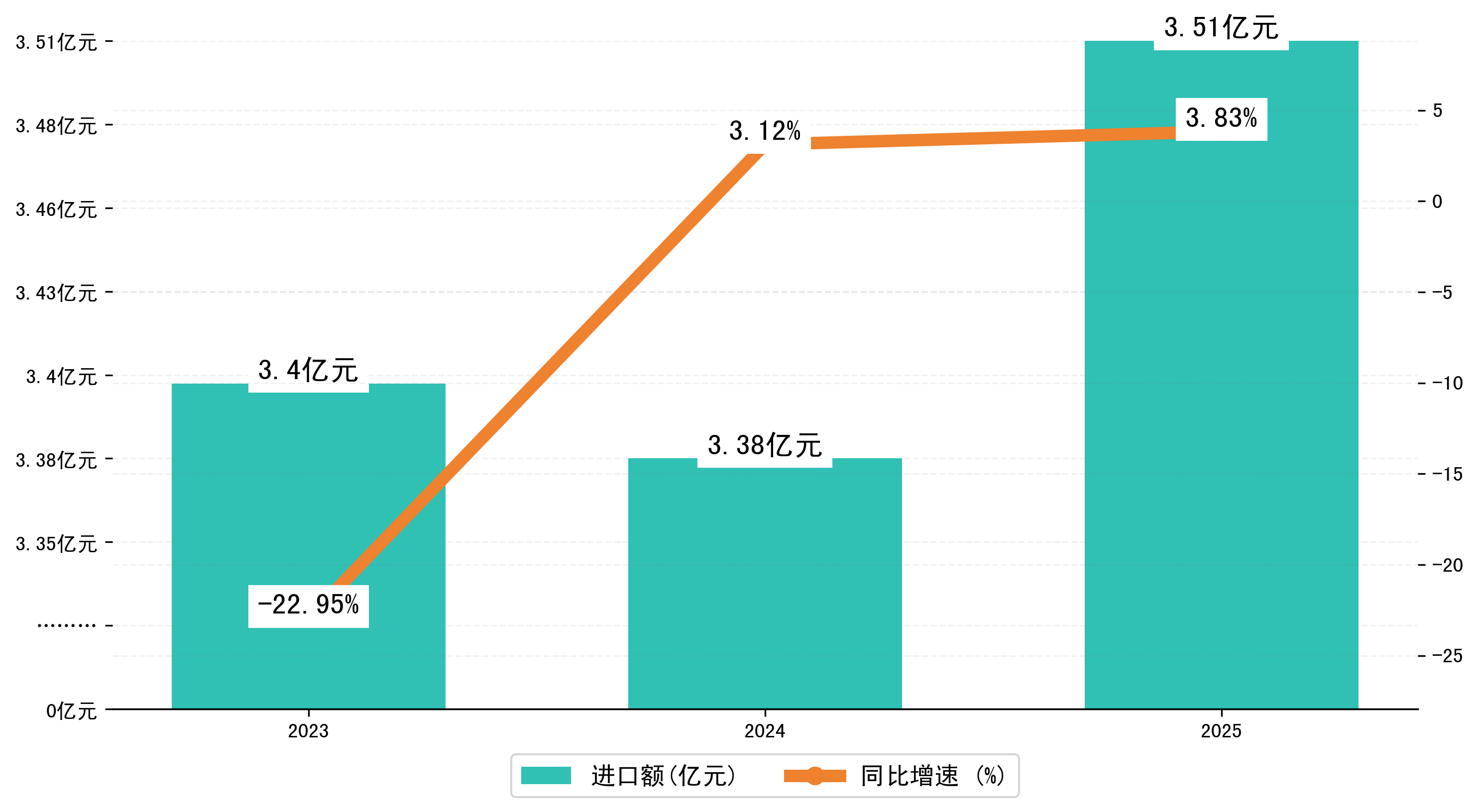 以人民币计,2025年1-1月宁夏回族自治区进口额为3,5085.544万元,相比上年同期增加了1295.0645万元,同比增加了3.60%。
