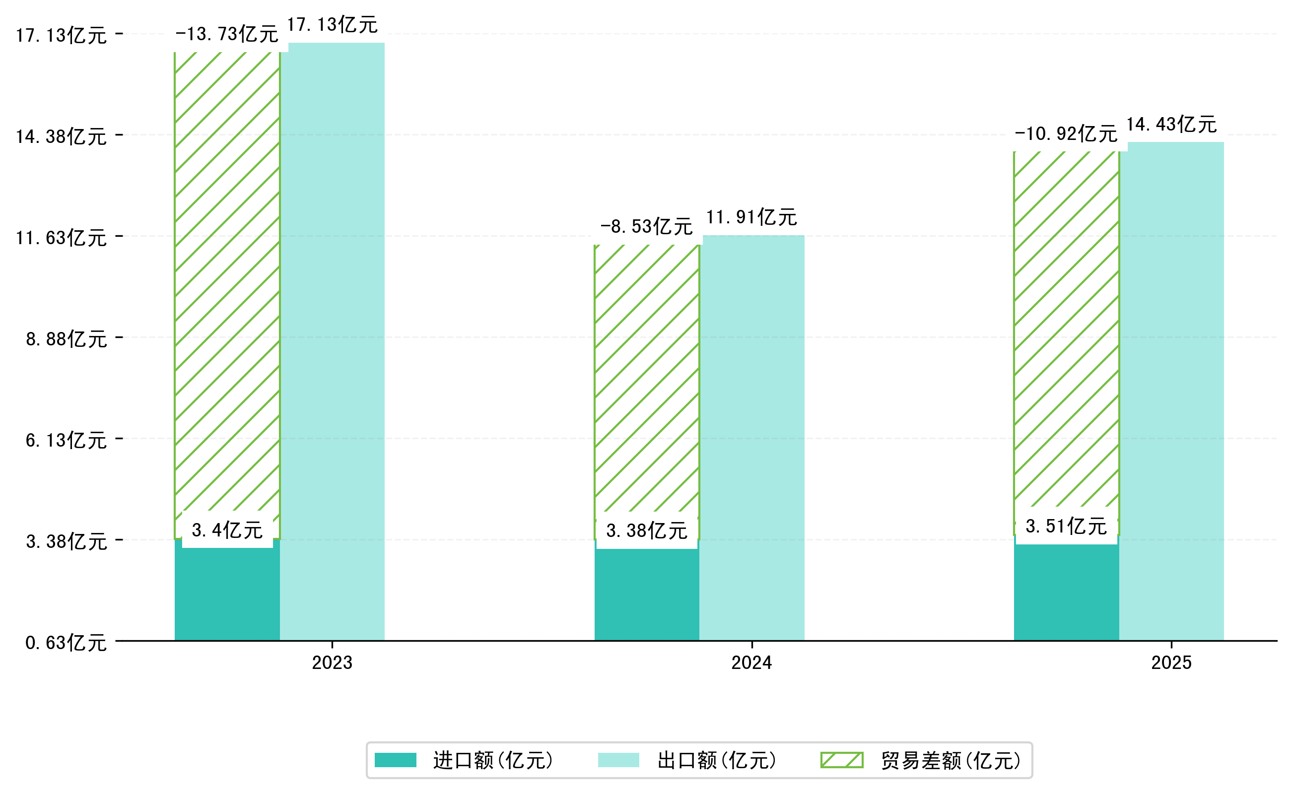 以人民币计,2025年1月宁夏回族自治区贸易差额为10,9248,7044万元(贸易顺差),相比上月减少了3963,3676万元,即548,8675万美元;相比上年同期增加了2,3977,5093万元,同比增加28.12%。