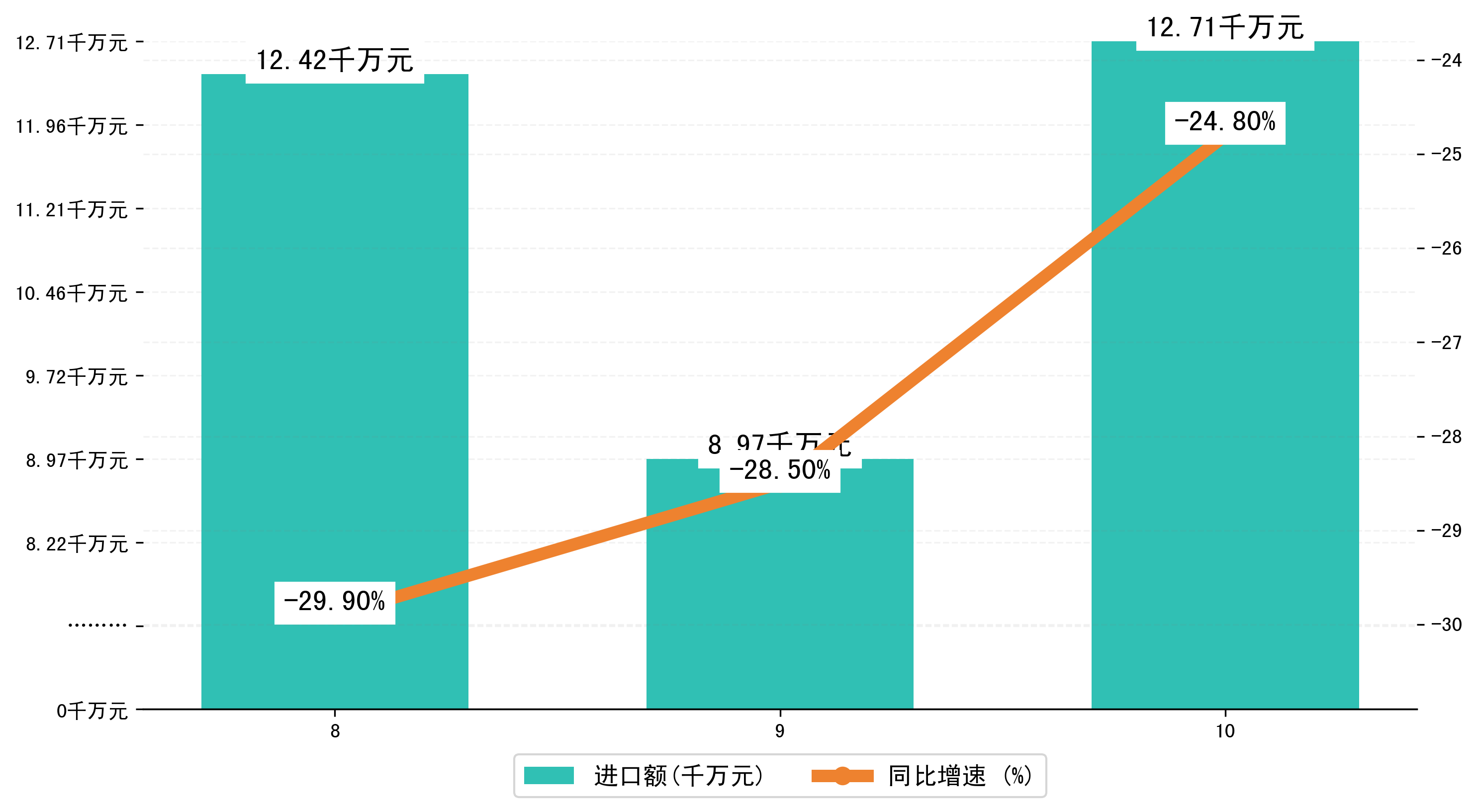 以人民币计,2024年10月青海省进口额为1,2712.1886万元,相比上月增加了3746.2488万元;相比上年同期增加了4075.3204万元,同比减少了-24.80%。